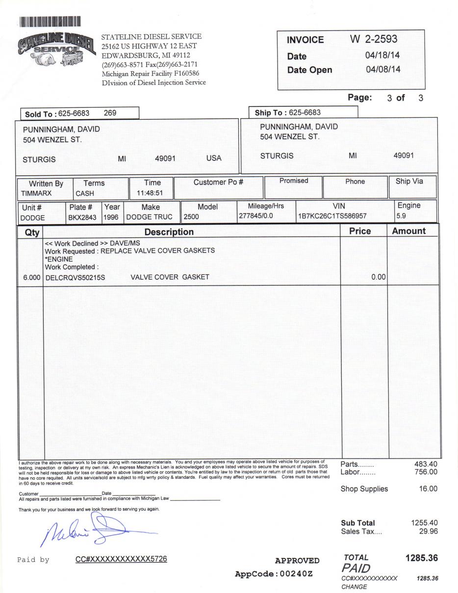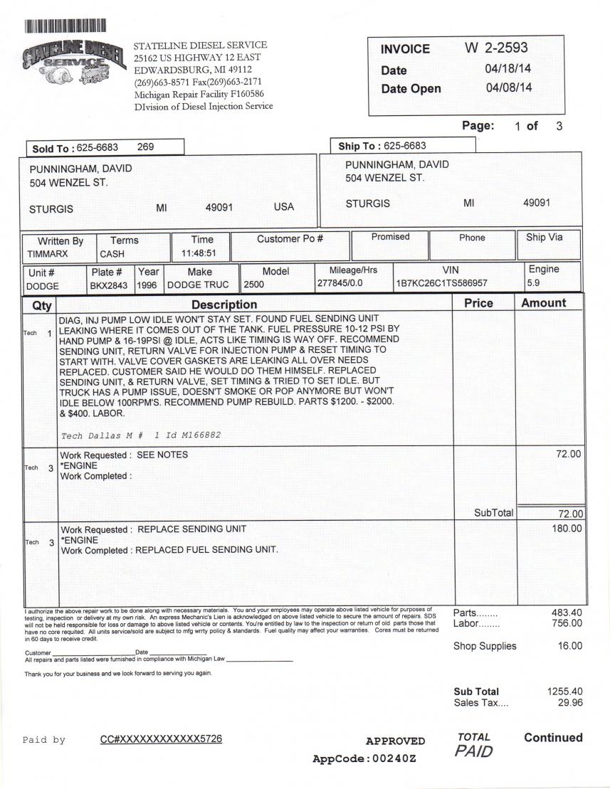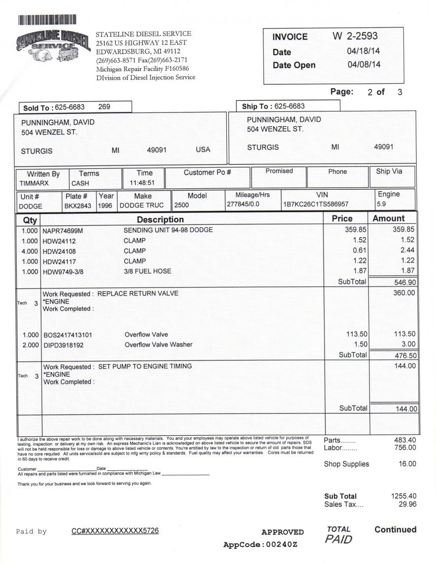 Service writers are taught to balance labor and parts 60L to 40p. He may have seen that without modification it's hard to remove the valve and charged book for pulling the pump. So he didn't have to modify the truck and got his labor in one shot.