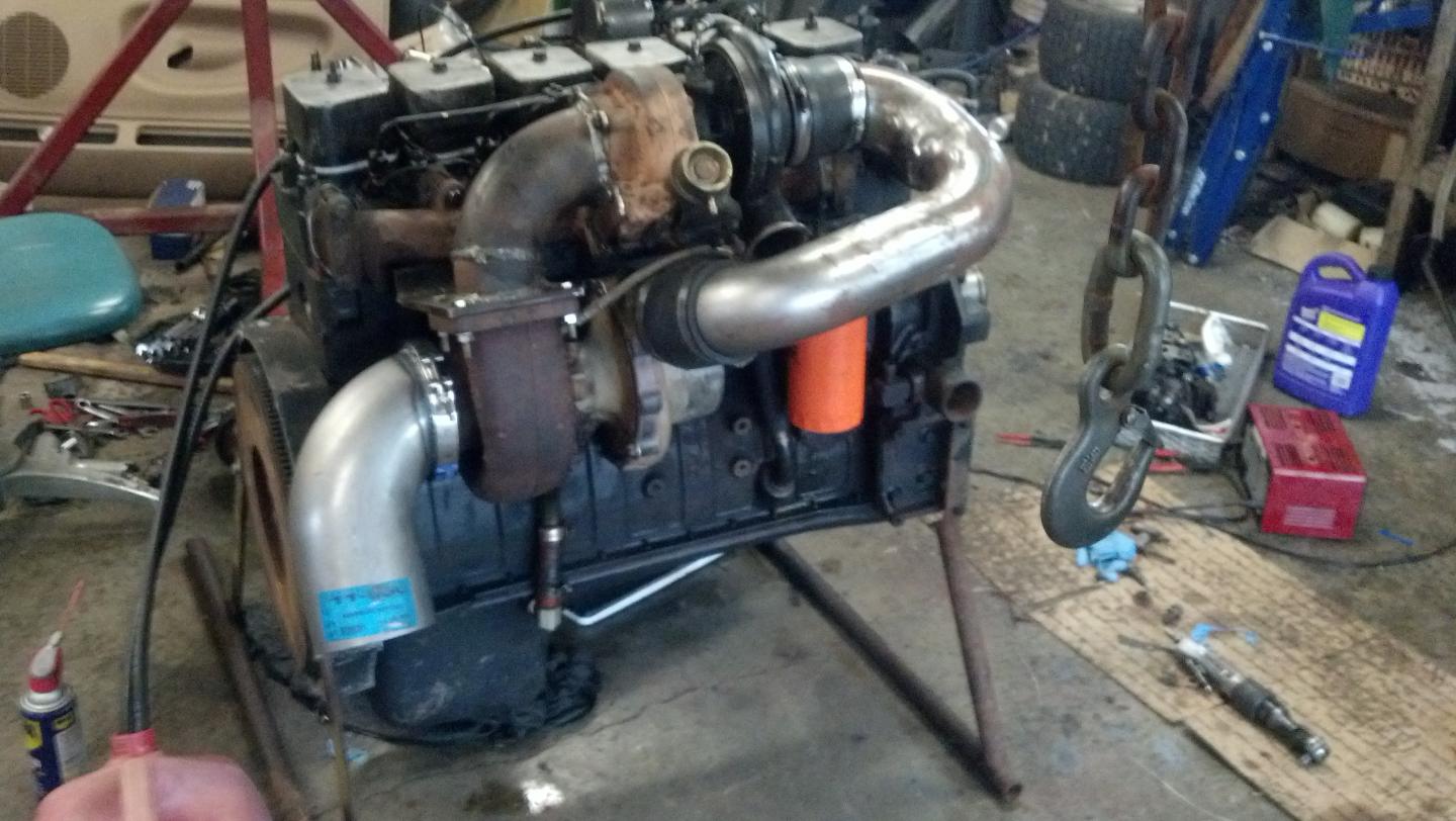 It has a hx35 with ht3b casue that is what I have . Has 5x12 injectors, may get 14's later so will probably need an electric pump anyway.