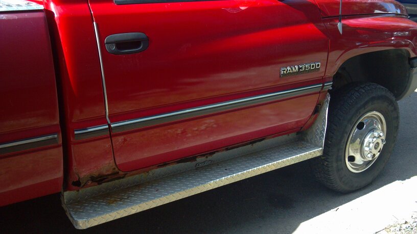 Alright, so I'm ready to buy my first truck. I really am a cummins fan, and I've got my eye on a local truck. It's a '94 Ram 3500 dually 12v, single cab, 4wd, nearly-new tires, 4" mbrp straight pipe, boost gauge, and a few other turbo-related goodies with 194,000 miles. It is an automatic, but the guy states that it has been rebuilt with billet input/output shafts, and a shift kit. He is asking $5000 for it, and the body has a little rust on the cab corners, and on the bed. I asked about the front end, and he says it drives well. How does this sound to you guys? I'm driving a half hour tomorrow morning to take it for a drive and get some pics. Anything I should look for? Leaks, wearing, anything? Thanks for your opinions, it is much appreciated.