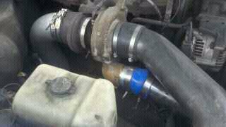 I made a 4"adapter that I welded to the exhaust pipe to clamp it right onto the turbo.