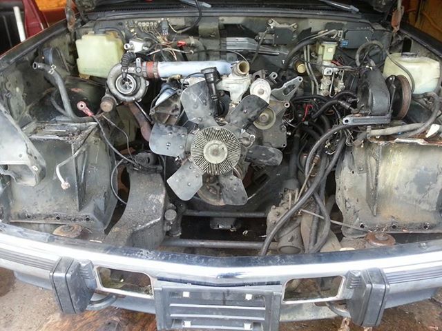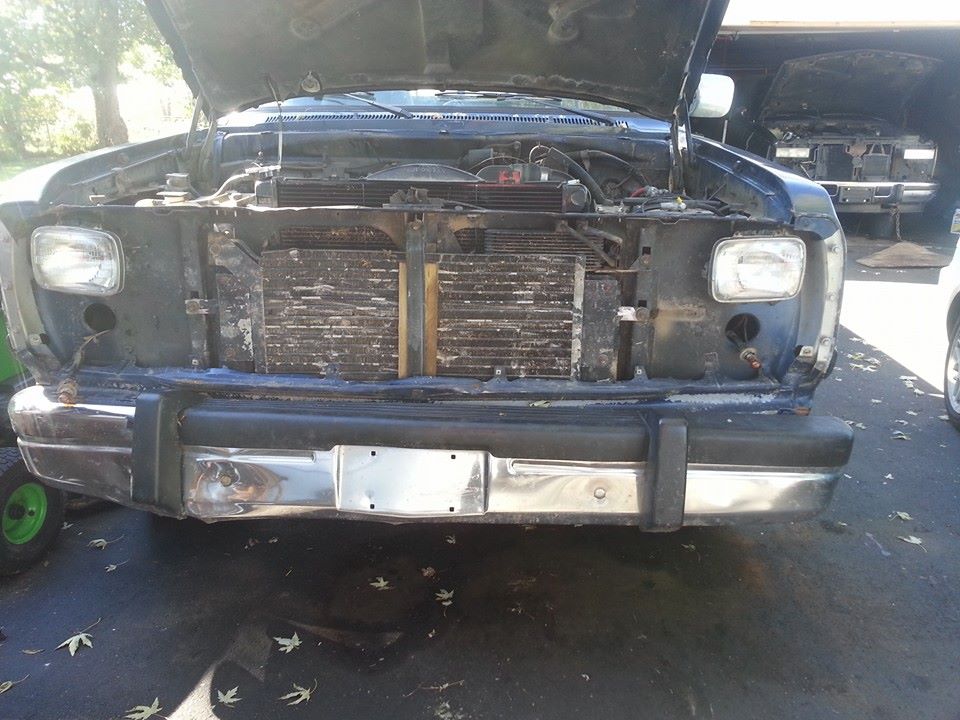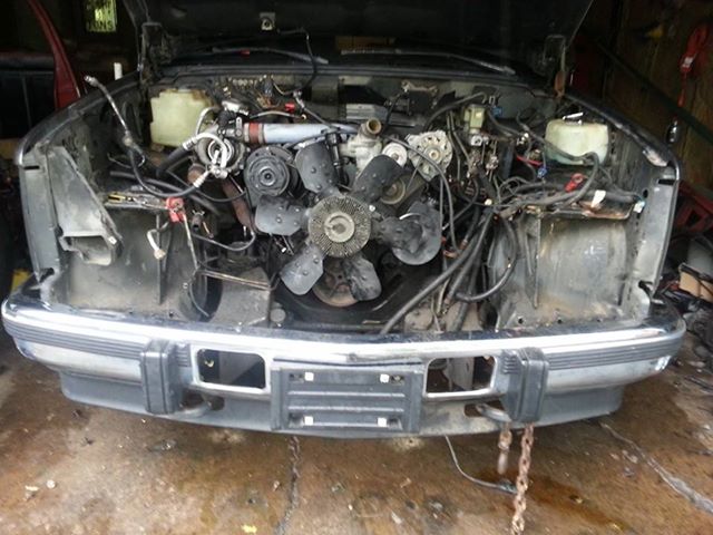So far core support/front end drive shaft and mounts are unbolted and off on chevy, just have to unbolt trans, pull it and hook up motor and pull her out.... then doing the same to cummins only cutting her out