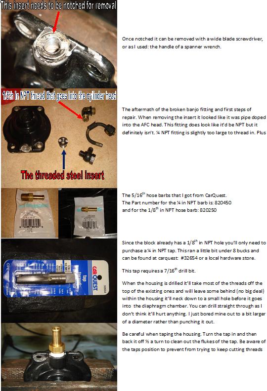 i repaired mine for like... 8 er 10 bucks opposed to the apparent 80... i could upload the pics and see if i could do a write up... it does involve notching the insert in the afc head and drilling it for a 1/4 npt