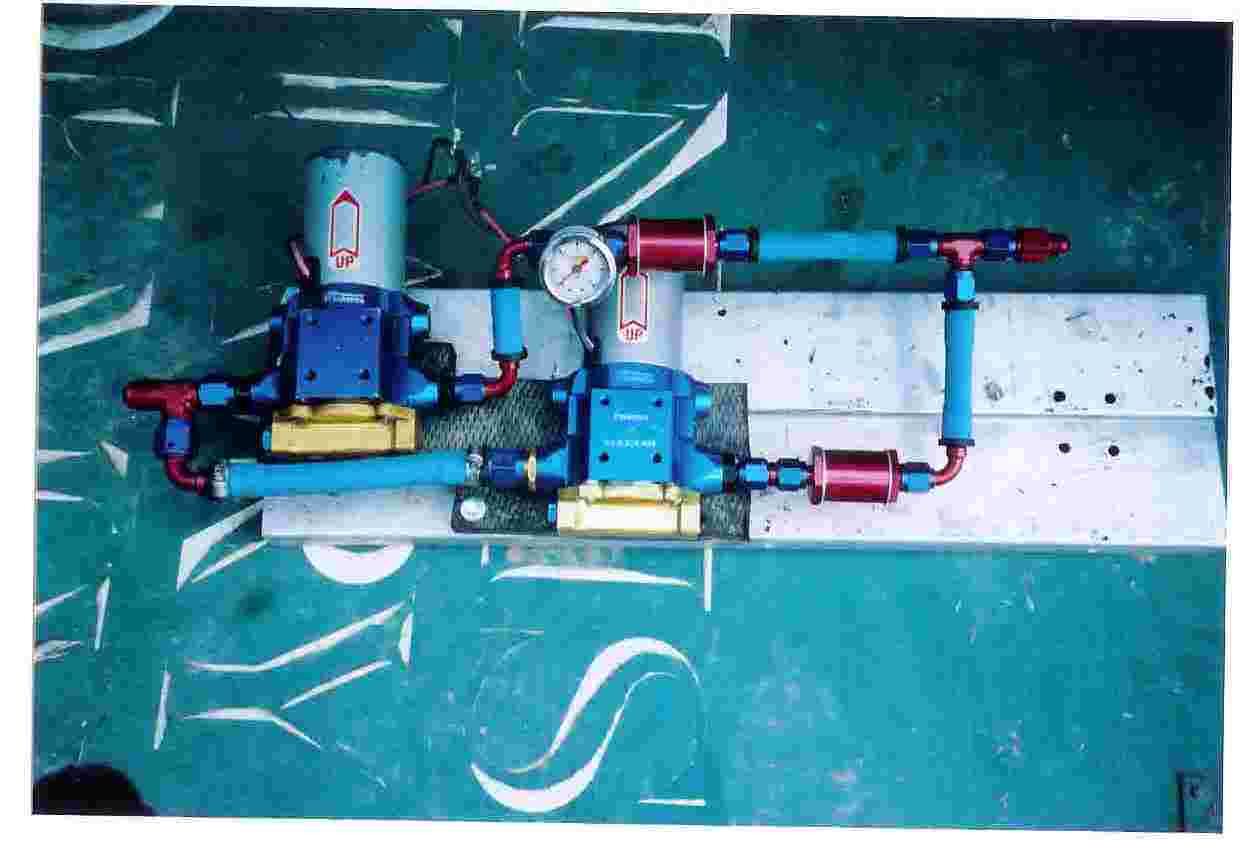 I ran this system for a few years and it worked well. The dual sysytem saved my *** last year coming across the Utah/Wyoming Mountains in a blizzard with a trailer behind me. My fuel pressure all the sudden dropped off to 0 and both pumps were dead. I limped into a truck stop to check things out, several degrees below 0 not including the windchill with whiteout conditions late at night. Turns out one of the pumps had locked up and it blew the fuse that ran both of them. Just flipped the switch to turn that pump off, replaced the fuse and drove the next 600 miles to home. Ran on the one pump for several months and when it came time to replace it here recently I decided to go with a belt driven pump instead. I like to try out new things. That's how this dual pump thing came about.