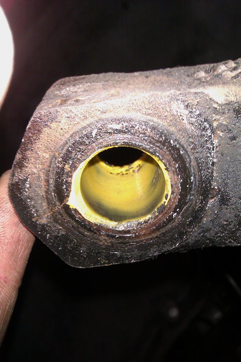 Note that for the pictures, I put a thin coat of gear marking compound inside the tapered hole only - I did not put any on the rod end itself. The rod end was inserted into the taper until it bottomed out, and then pulled straight out. Looks like a nice match to me. The funny marks at the top of the tapered hole are where the rod end threads bumped it as it came out.
