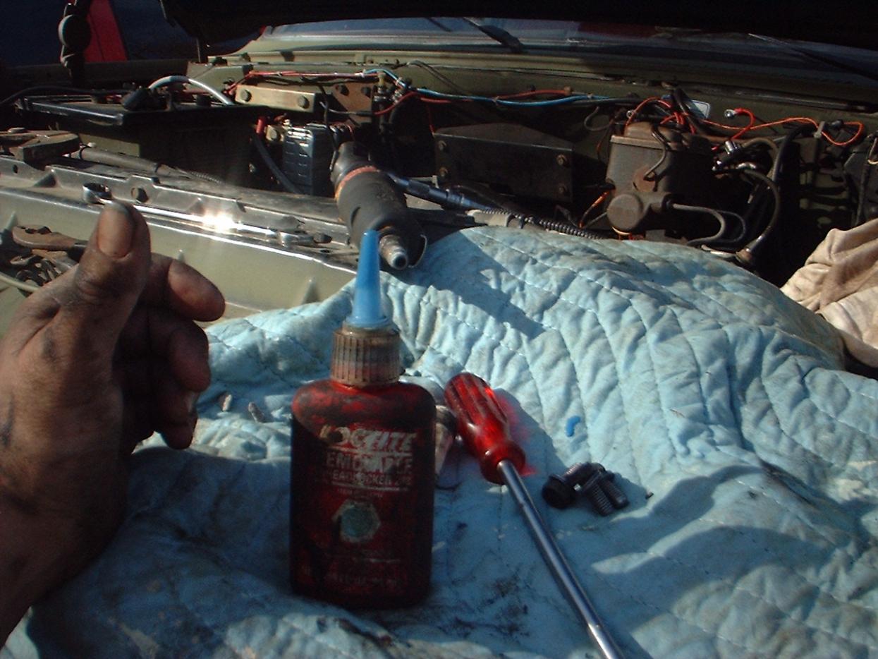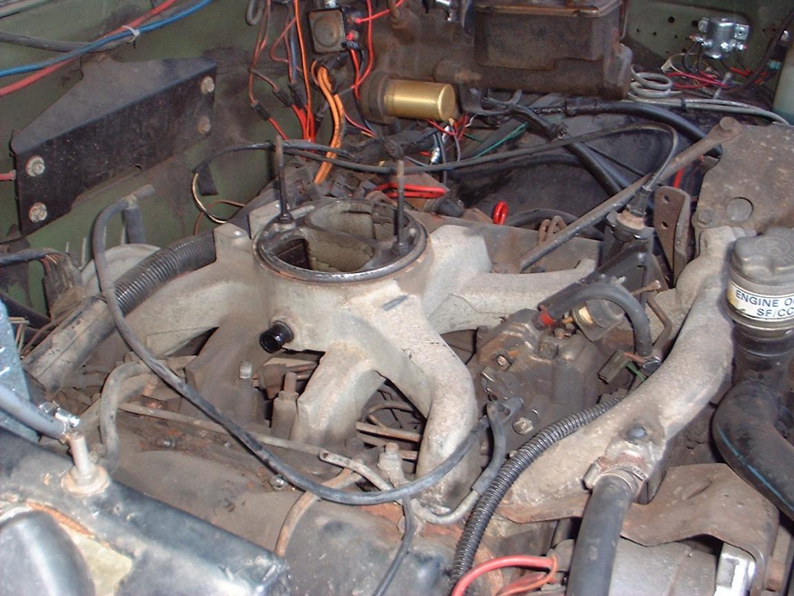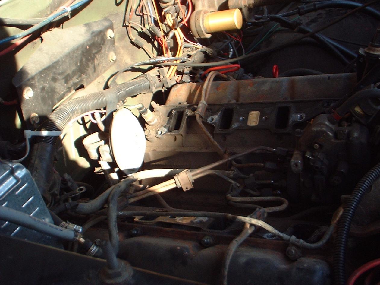 First step, get the tools ready. Also take note of the double nuts on the air cleaner. I strongly suggest doing this. Here's what can happen if you don't..The studs break from vibration at the base and then flop around and eventually work loose from the wing nuts and the guess where they end up ??? I was pretty pissed having to toss a perfectly good 6.2 in my 83 after it made it's way into the cylinder and destroyed the head, piston and cracked the cyl wall. Also I like a few shots of the motor before I take it apart in case I get Alzheimers mid project...