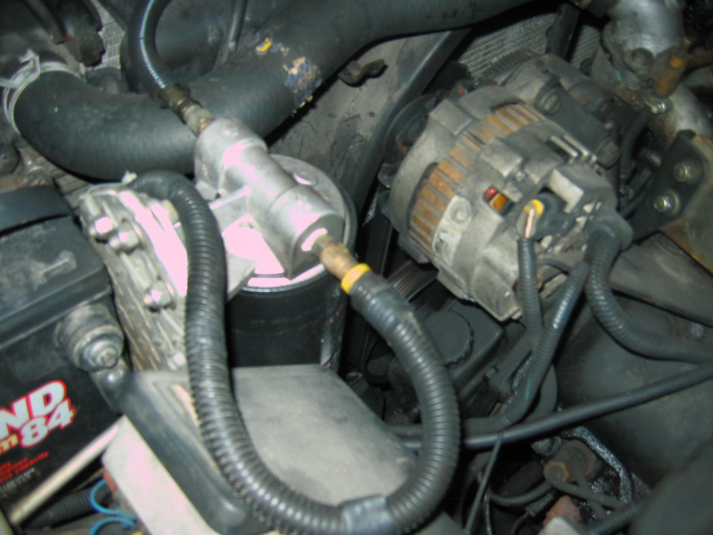 the engine oil cooler lines for the 1994 K3500 6.5 TD. I need a T placed in one of the lines to feed my FS2500 bypass filter. The middle can be 1/4" NPT. The present T I have in another vehicle is 1/2x3/8x1/2 and the 3/8 hole is bushed down to 1/4"m NPT.