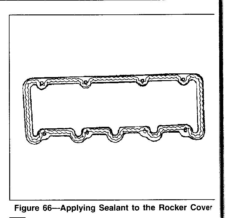 Clean the sealing surfaces on the cylinder head and rocker arm cover with carburetor cleaner or equivalent. Apply 3/16" bead of RTV sealant GM P/N 12345739) to the valve covers, inboard of the bolt holes. Refer to figure 66 (see attached). The sealer must be wet to the touch when the bolts are tightened.