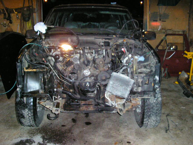 Oh its getting a P-pumped Cummins with a 47rh behind it shoved between the fenders of it. If anyone who has done it has pics of thier motor mounts I would love to see them.