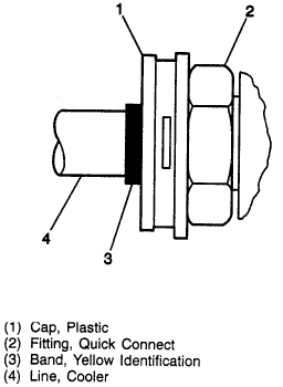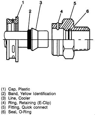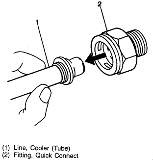 2.Remove the two cooler lines from the two quick connect fitting on the transmission or the auxiliary oil cooler by using the following procedure: