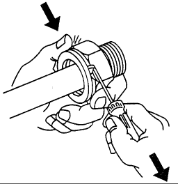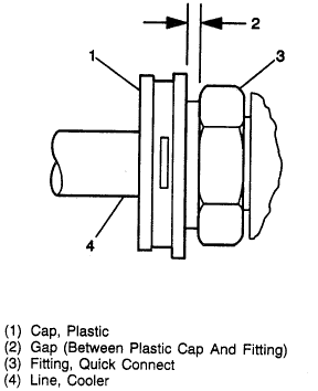 •Pull back sharply on the cooler line to assure the line is fastened into the connector. If the plastic cap is not properly seated, remove the existing retaining clip and install a "NEW" retaining clip per step 2 of the installation procedure.