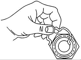 •Using a bent tip screwdriver, pull on one of the open ends of the retaining ring clip