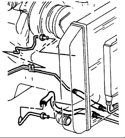 3.Clips and brackets securing the oil cooler line to the engine and transmission.