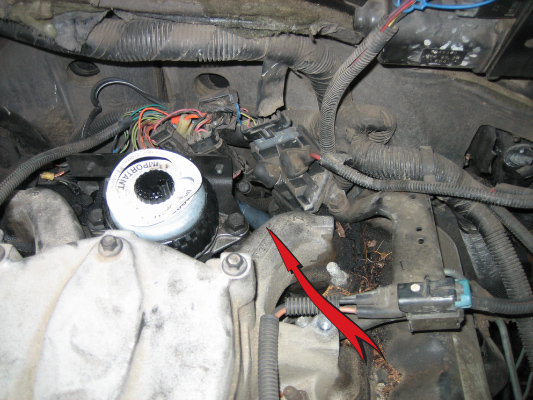 Here are a couple of photos as attachments of the location of the Oil Pressure Sender from a 1995 6.5 turbo Diesel.