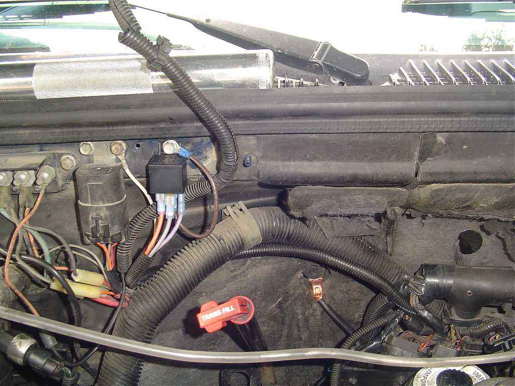 My pics don’t show the shrink wrap installed on the wires (I thought I had took one but this was the time the grandson decided to interrupt me). The fifth pic is of the wires from the OPS re-loomed and the relay wires Loomed. I decided to mount the relay under the electric shroud pic # 6 on the passenger’s firewall pic # 7 . It seemed to be the most likely place to put it. Being that the factory saw fit to have already put holes there and the other relays were there as well. I mounted the ground with the same screw I mounted the relay with. Then replaced the shroud.