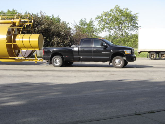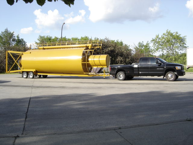 Its a portable silo I hauled it from MN to TX last summer. only weighed a little over 10K but had 2500lbs on the tounge and I had about 500lbs of stuff that went with it in the bed with 100 gals. of diesel, but hey thats what bump stops are for... right. With all that I was ready to enter a wheelie contest.
