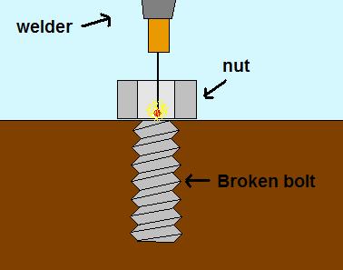 wire feed or stick? wire feed always seems to work best for this. for stubborn ones i have had to weld a small mound on the bolt first, then weld the nut on. the trick is to get it as hot as possible down at the bolt to make sure you are penetrating it well.