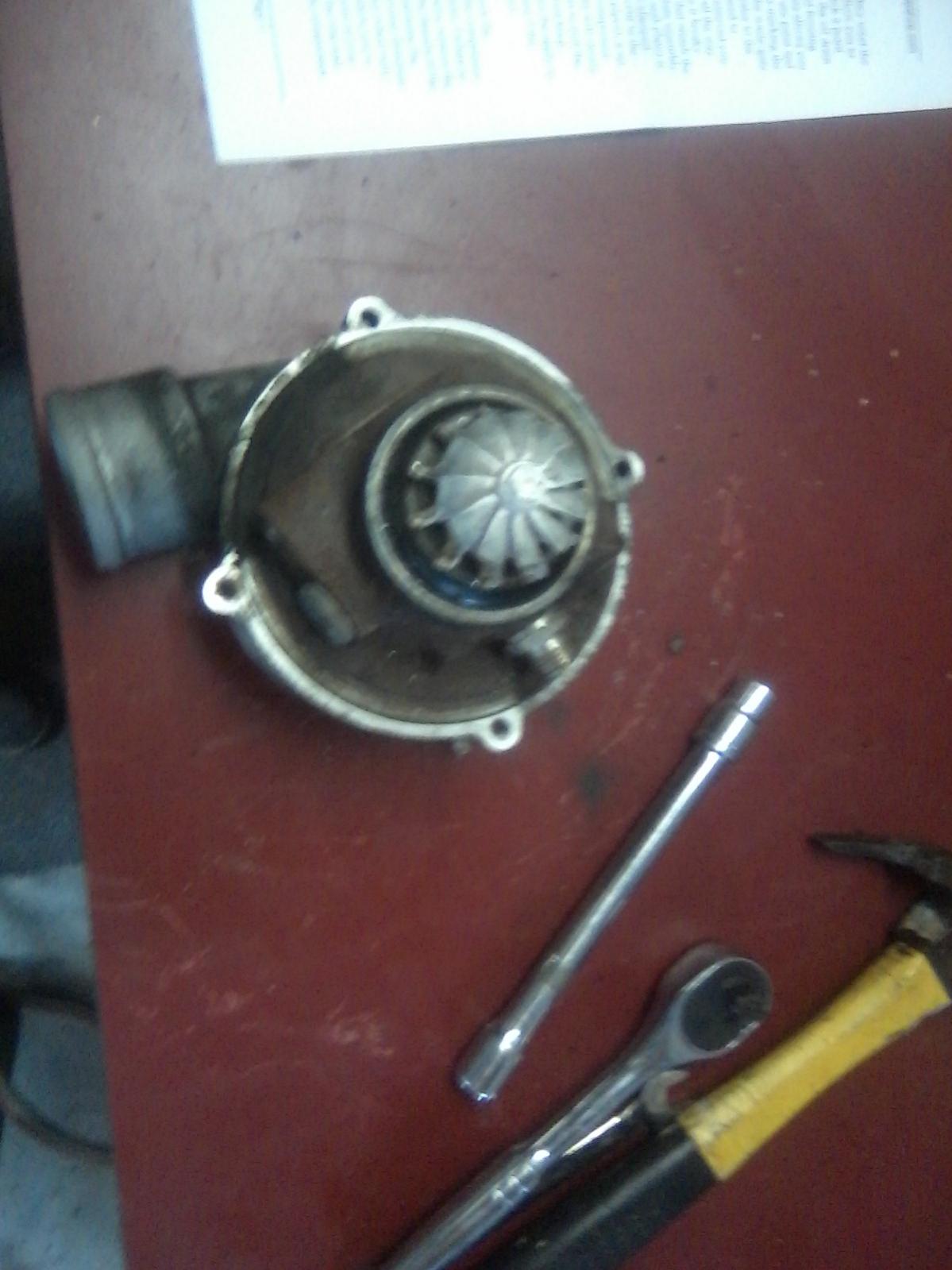 Havent been on here in a while, but im switching turbos to the K03-005 like Rangmar and I started rebuilding it today. Its a very simple task, took 20 min to tear down I have to take the parts to work tonight to clean them and then we will reassemble them in the morning. I will post pictures of the new adapter as well when they are done. We are making 6 so we will have 4 extras for sale. Also we now are going to machine flywheels for people and have one tranny adapter left for sale but can make more! Heres some pictures of the turbo and the tranny adapter