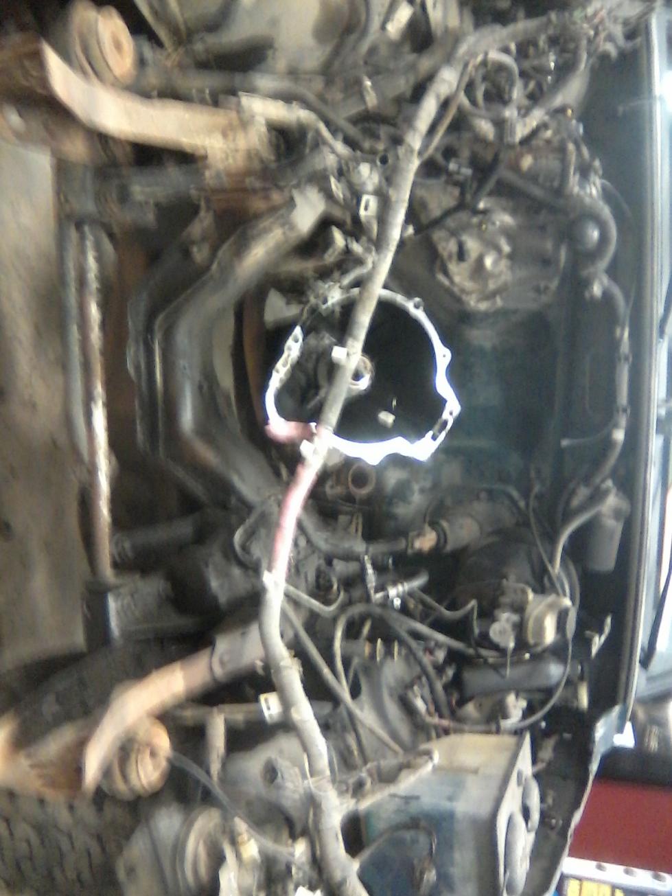 Started my new conversion about 2 weeks ago and just got the chance to start my thread. First off I wanna thank FTE and usedkubotaman, along with a few others that helped me compile the knowledge to start this project. So far I have pull my 4.0 motor out along with the transmission. I also pulled the core support because it didnt take long, and allowed for more room to work. I have a v2203DI motor and I am sticking with the kubota flywheel and starter. The governer spring has already been changed as well. I also have a Turbo to put on the motor but I think I will go naturally aspirated for a while first. Here are some pictures off what I have so far. after measuring the ford flywheel we bolted the kubota flywheel into the CNC mill and are currently trimming it down and re drilling it to fit the ford clutch.