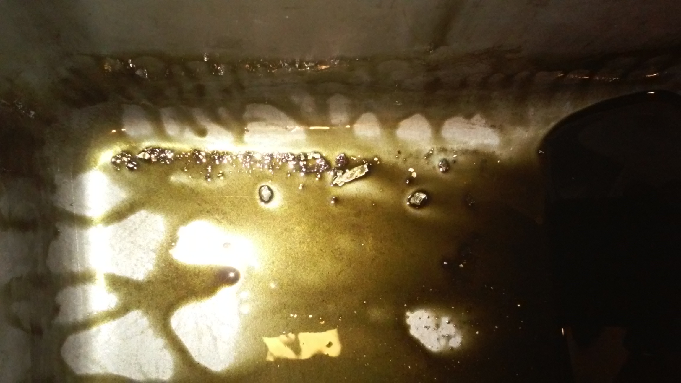 here is what was inside my oil pan when I got home. I saw the journals all cooked looking, and thought very bad; but I am pretty sure the discoloration is from induction hardening. A bit chunky to be driving around, I am glad it did not quit, but it was time for this little engine to take a rest