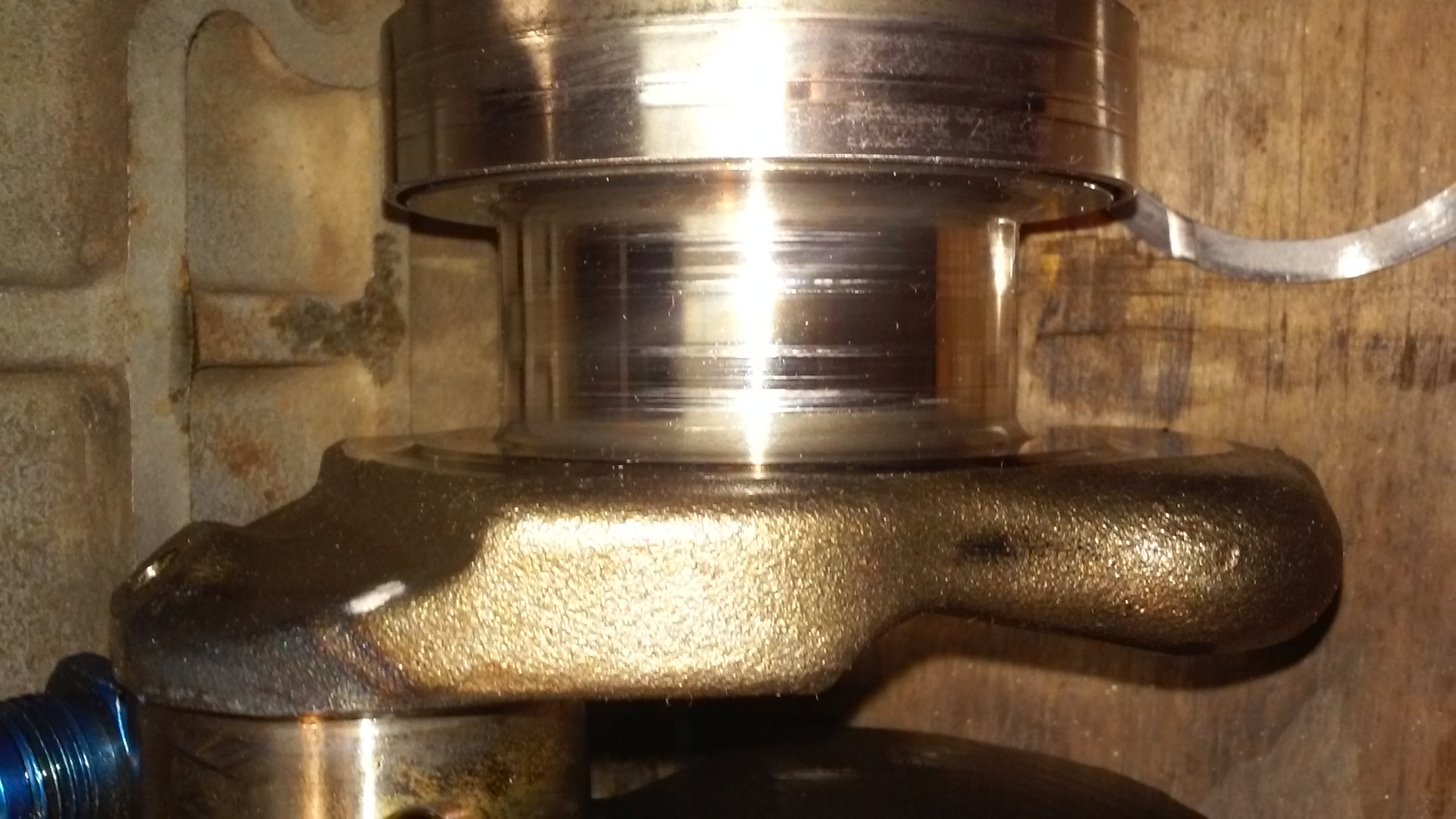 During the trip in a pretty remote place I lost about half my oil pressure all at once I was running about 25psi at 60mph 10+ at idle for about 2 days, then the oil pressure went back up to about 35, a little less than usual. I changed the oil only and it did not really help. It took a few days and about a 1000 miles for me to get too a new oil filter. I cut open my oil filter and it was full of non magnetic metal. put on a new filter and drove 3500 miles home with as little delay as possible. cut that filter open and it looks clean maybe 2 or 3 little flakes. The engine was running smooth enough, but clattering pretty loud. I pulled one rod cap off and it looked normal