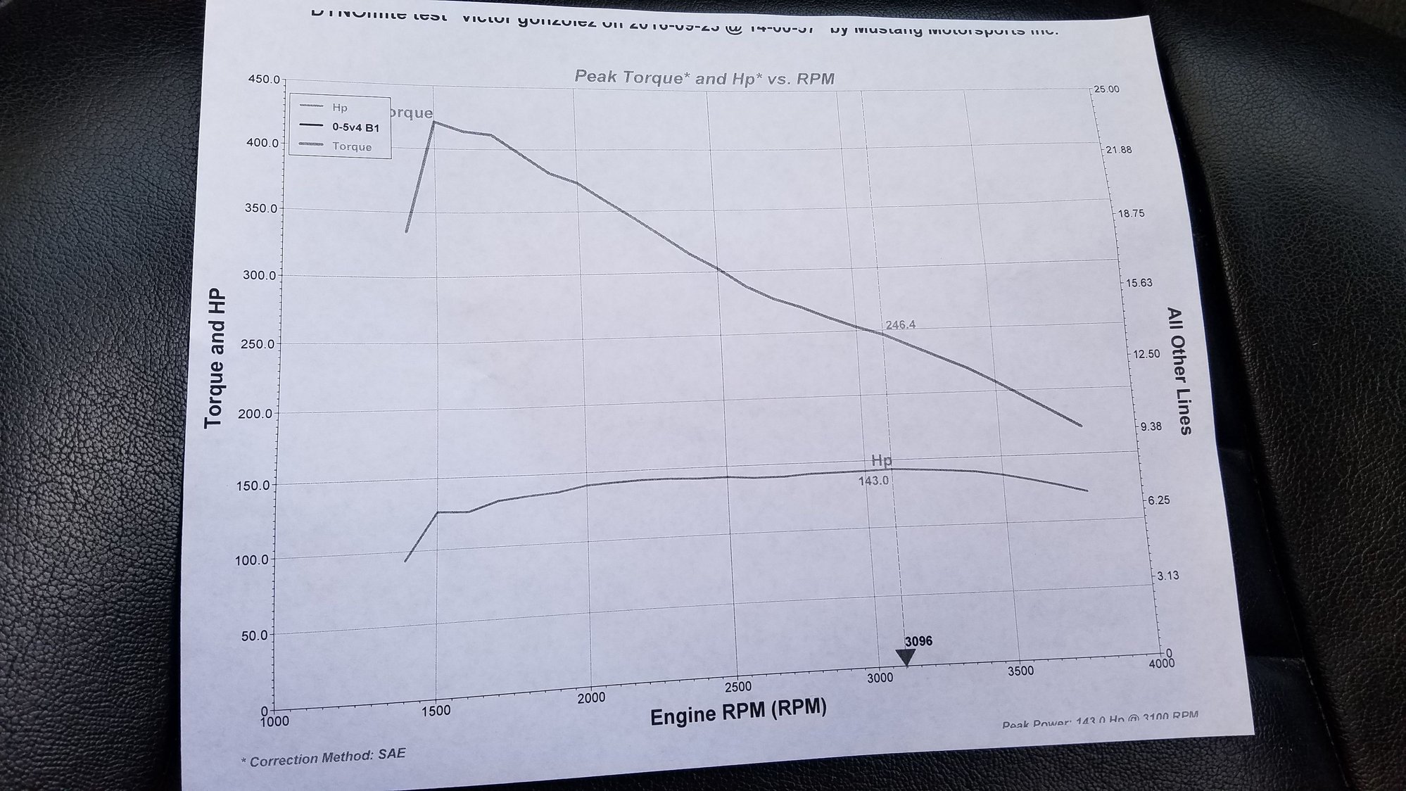 Can someone explain these results to me? They seem almost to good to be true. The picture above is my average run. The best pull ofthe session was 148.6hp and 450tq. I was not expecting these results, I was expecting more HP and less TQ. All pulls were in 4th gear non-lockup with electric fans on high (70amp draw).