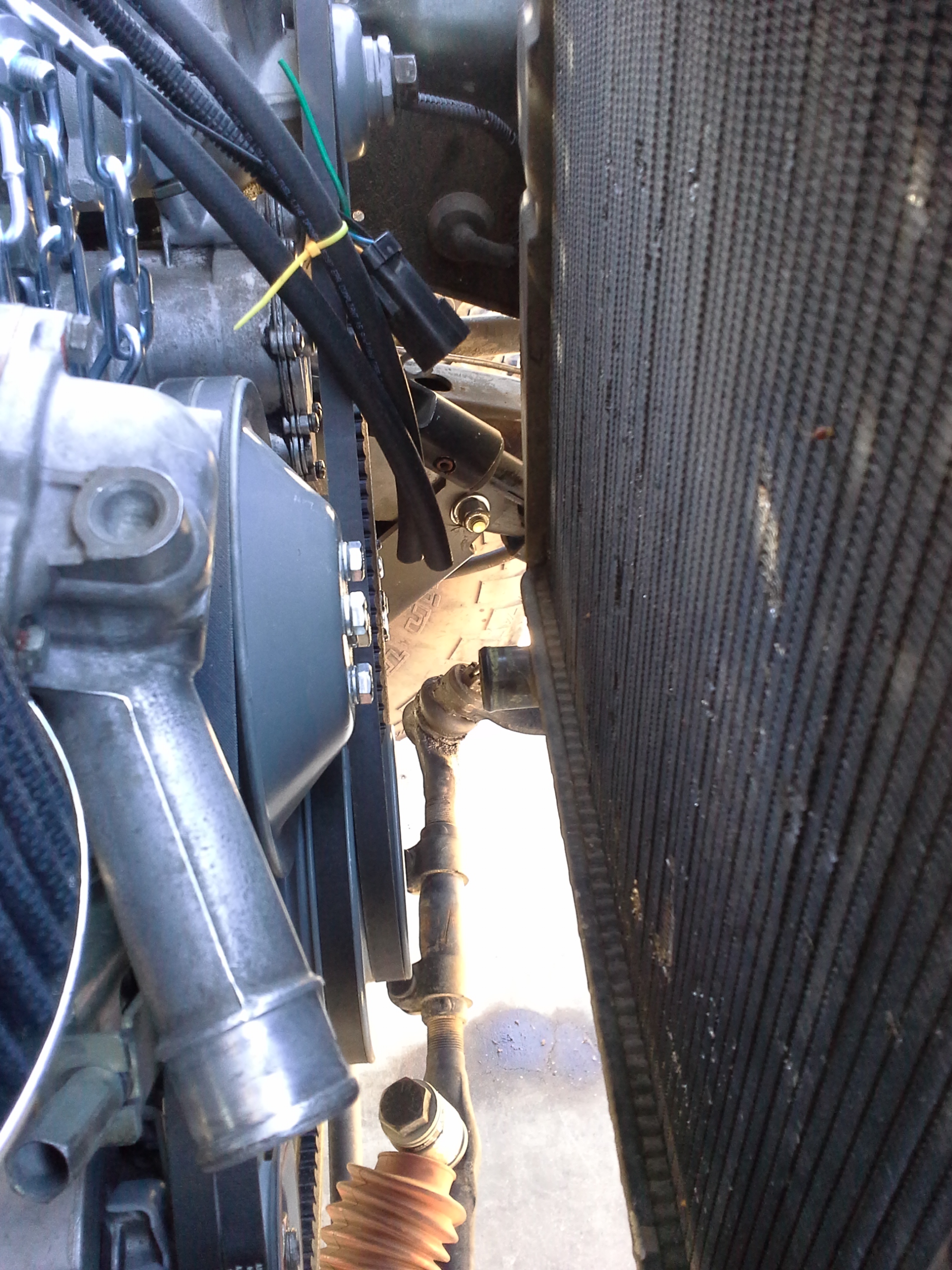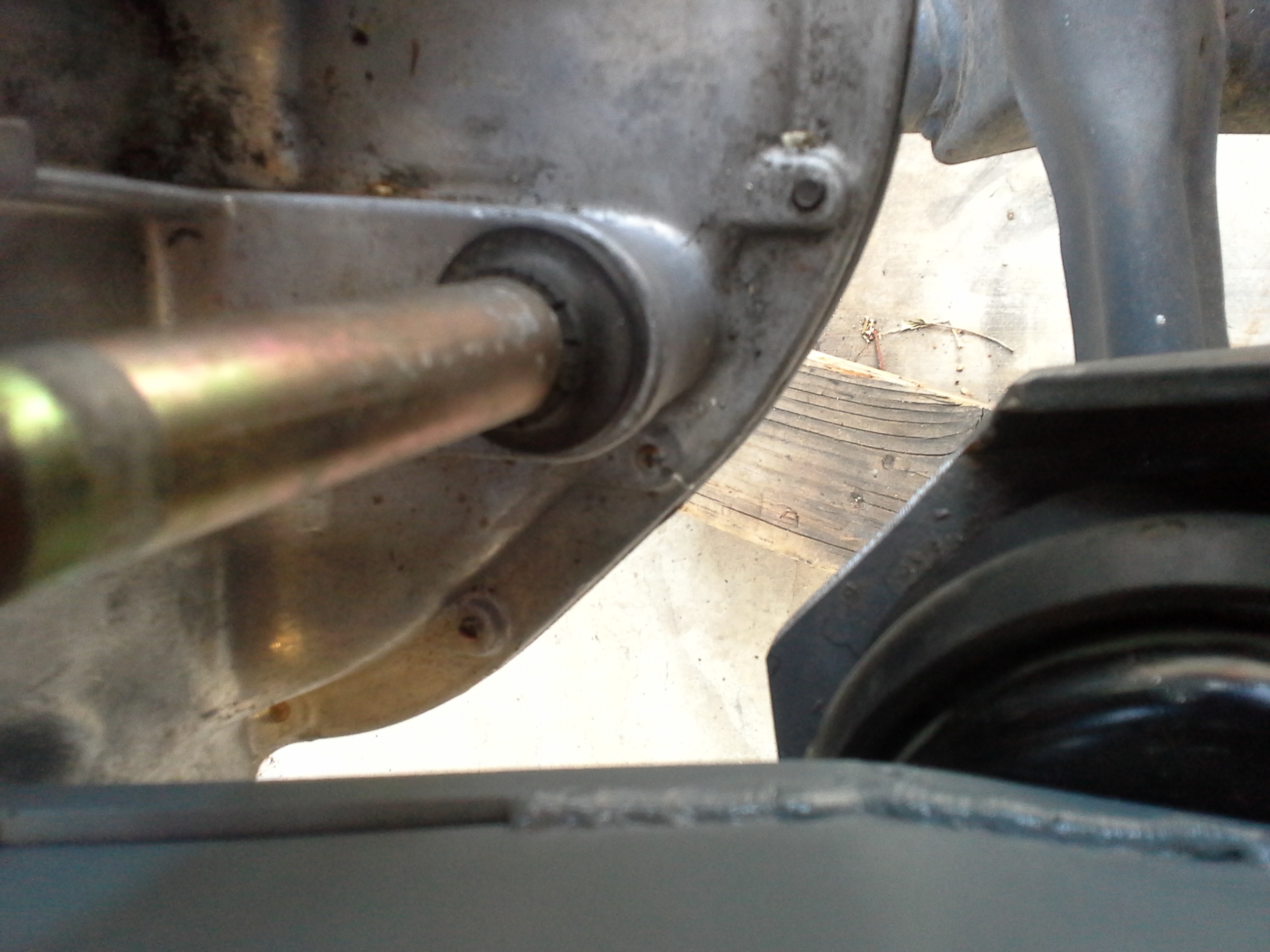 OK this is what I was dealing with prior to the new arms. The first picture is the stock arm resting on the stock Mercedes mount. If you look past the mount, you can see how close the pan is getting to the front pumpkin. The second picture shows the proximity of the front of the engine to the radiator. it was about 2 1/2 inches. Maybe 3 1/2.