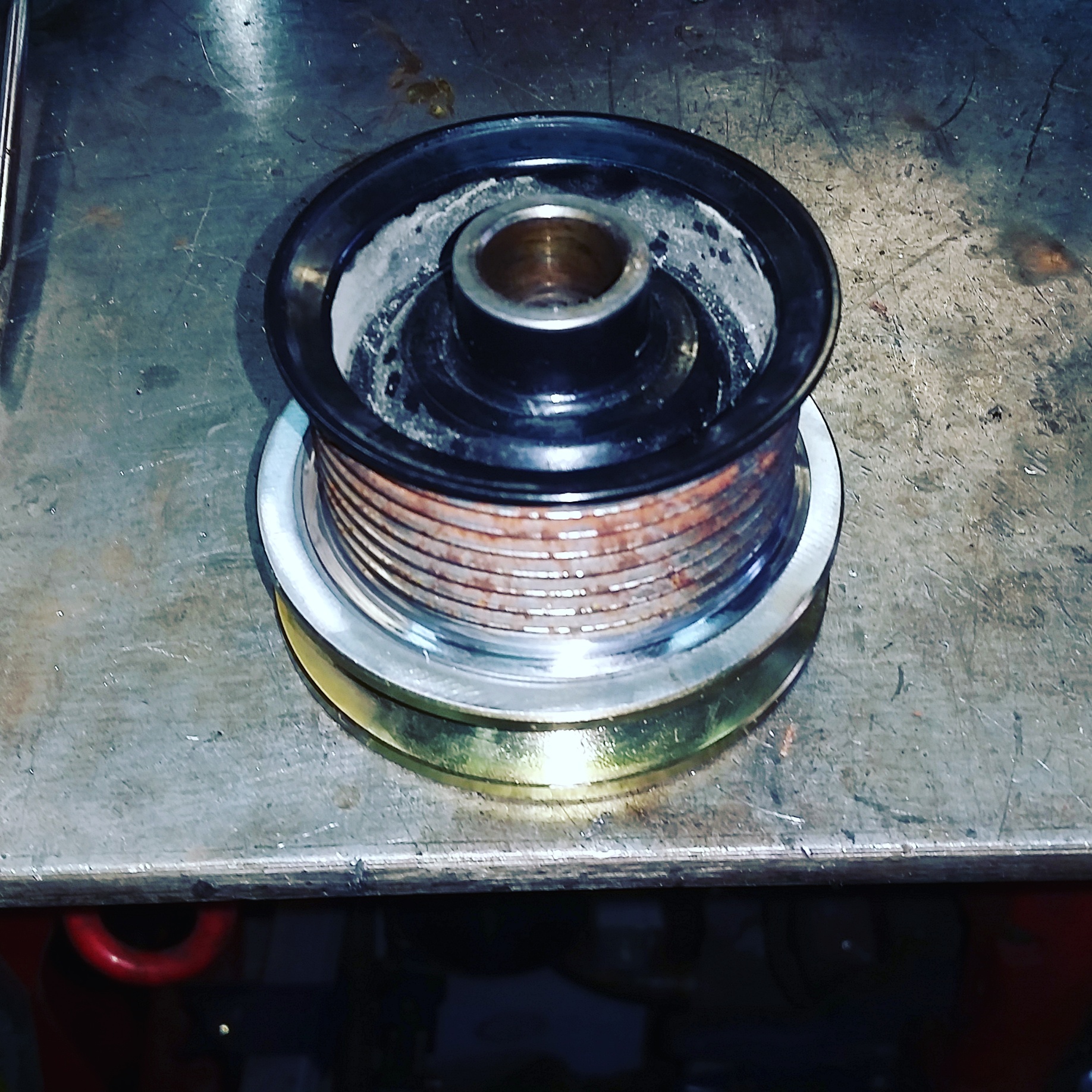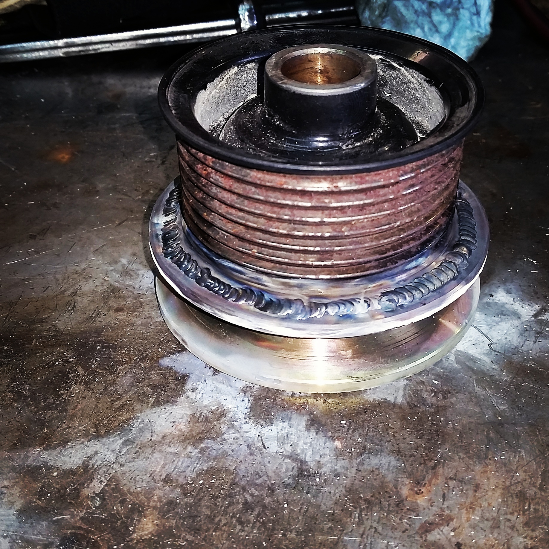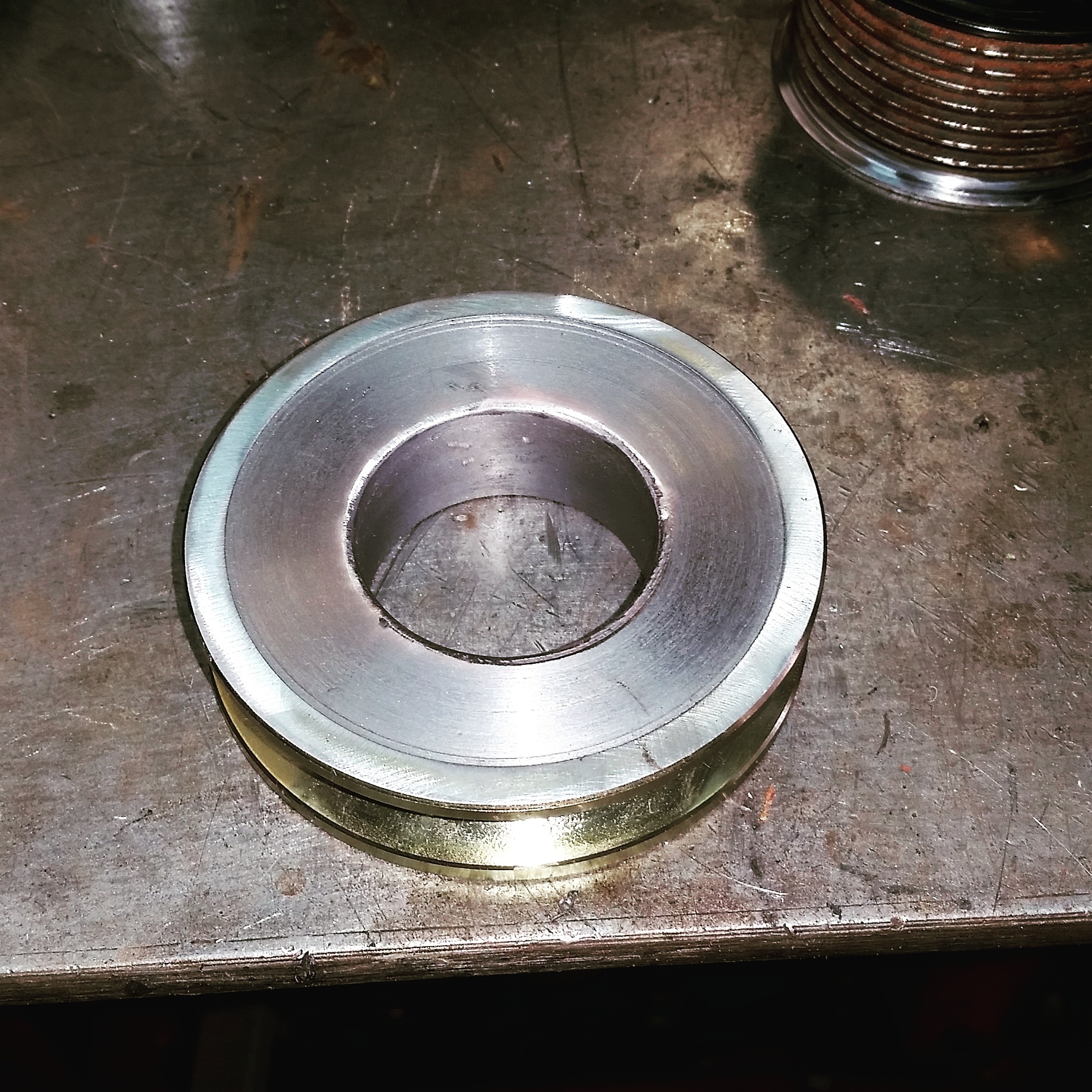 Got the flywheel back from the machine shop and went to work on the clutch, I sourced a new pilot bearing from the local bearing supply but the minor diameter is 1mm to large so I made a bushing and pressed it into the bearing and has a good slip fit over the input shaft