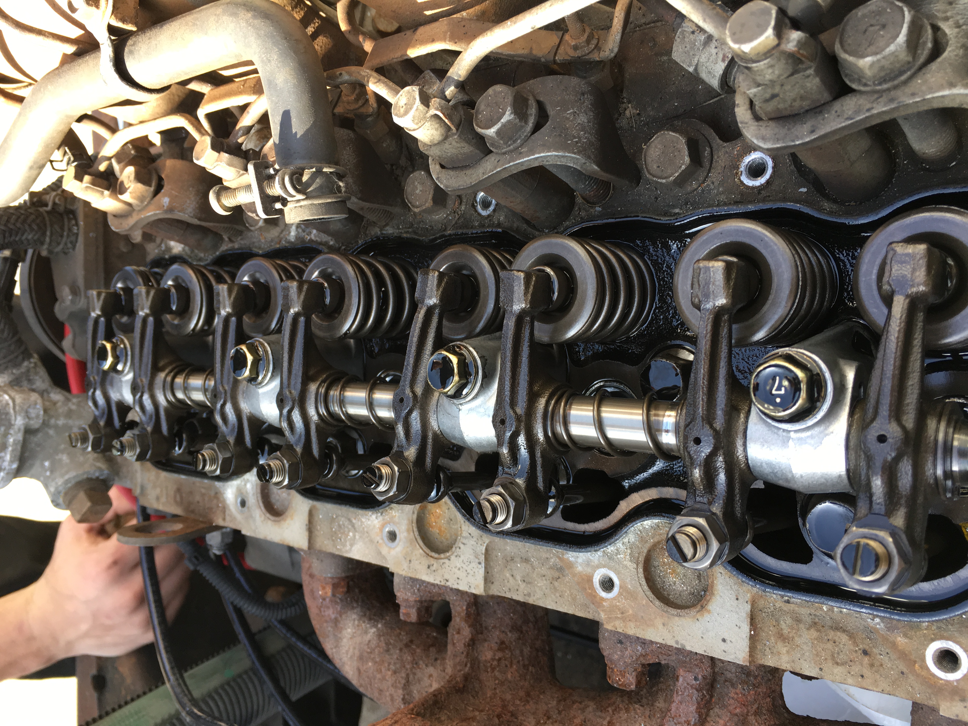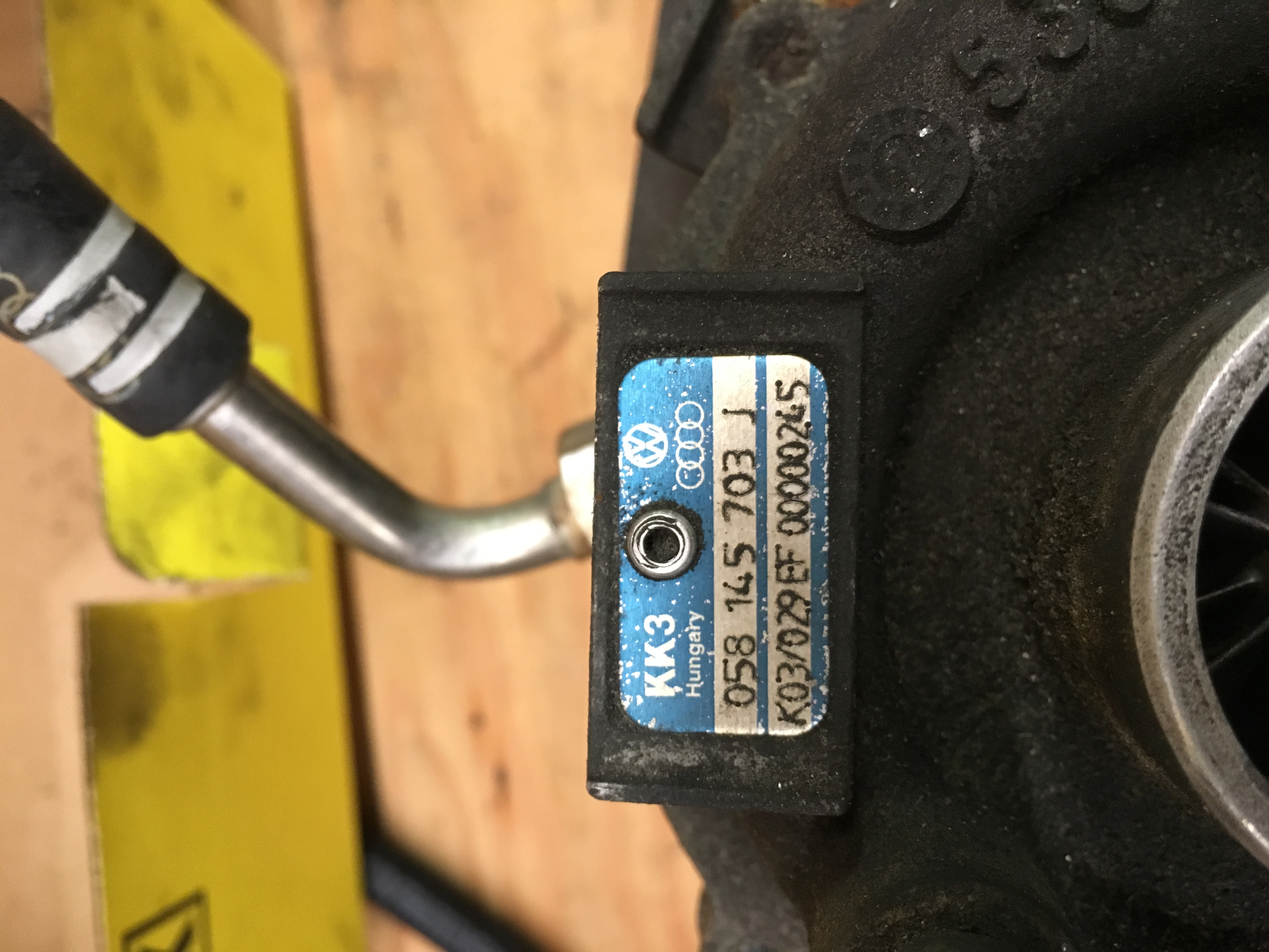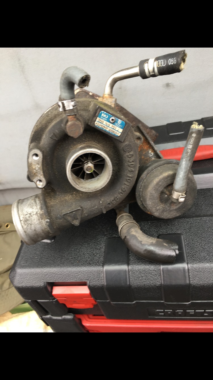 Quick update on everything. The weather has finally stopped being miserably cold and I was able to get some stuff done on the Kubota. I got the valve cover pulled and checked the valve lash and it was all in spec. Started right up (62* that day) after I primed the oil system because it sat for a few months. And then it snowed eight inches the next day. Fast forward to this week, I finally got a turbo pulled off a VW Passat and what a pain it was. Everything is in the way of the bolts. I snapped one off in the exhaust housing that I'll have to drill out, but everything else came out nicely. Minimal shaft play and the exhaust side is free of oil. I also went and bought another fuel bleed petcock because in my boundless excitement to first start the engine I ripped the thumbscrew off the valve. In my defense, it was a little stuck. The Carrier part number for that is 25-37593-00. I also contacted someone at Carrier and he was interested in my compressor, so hopefully that will free up some funds.