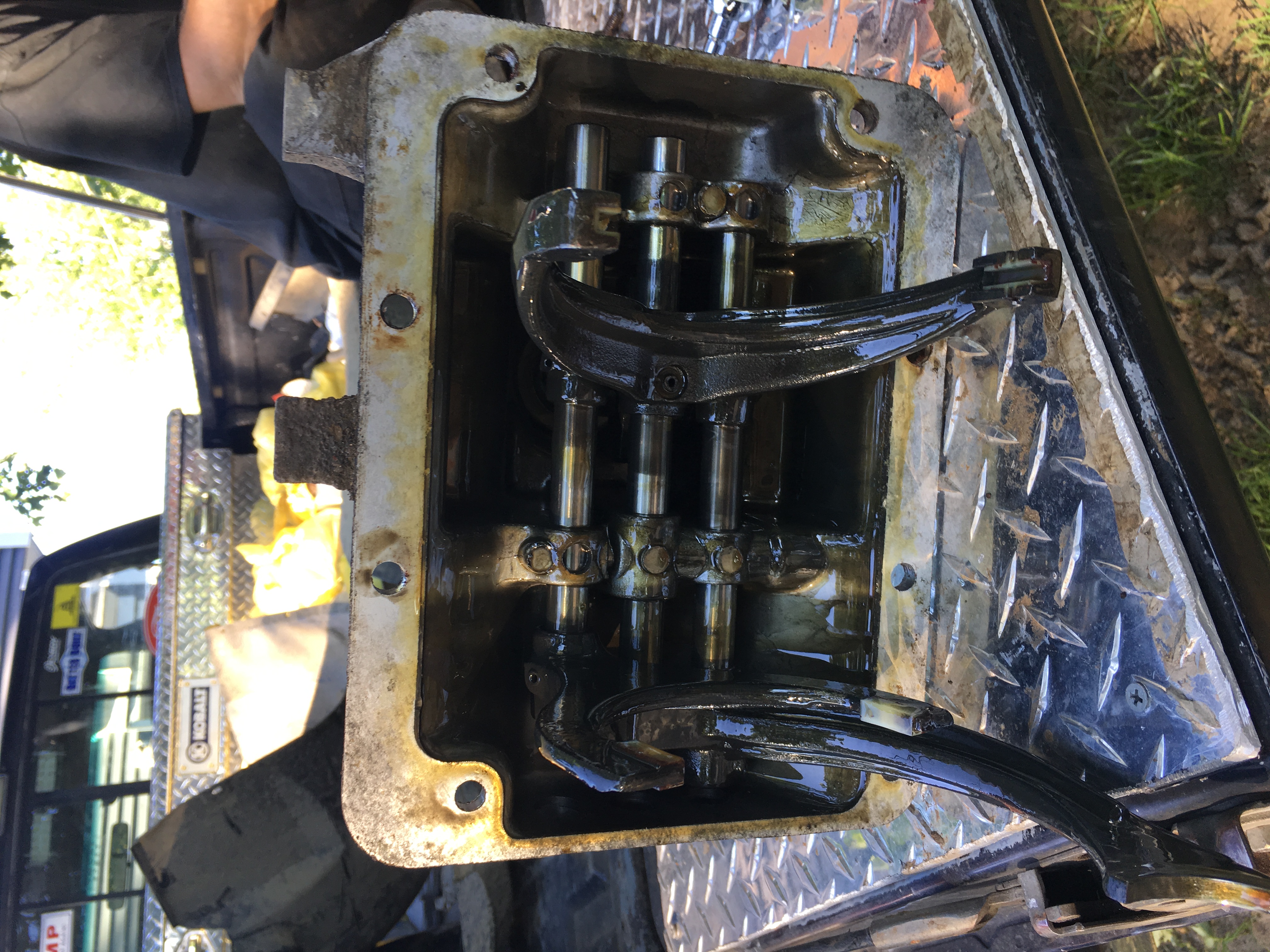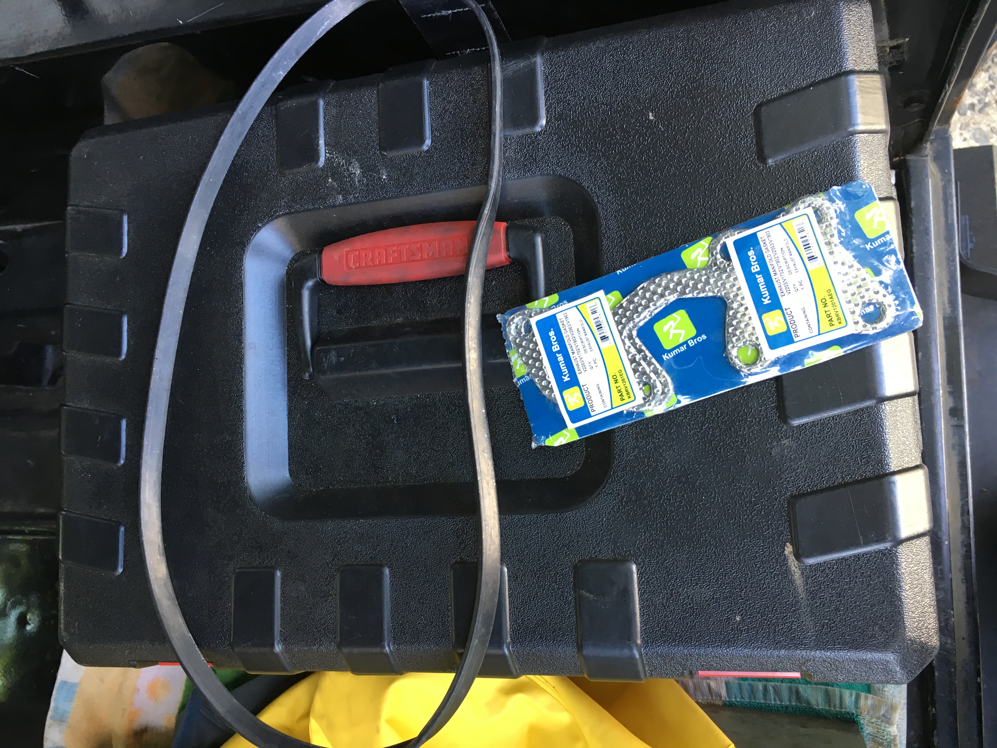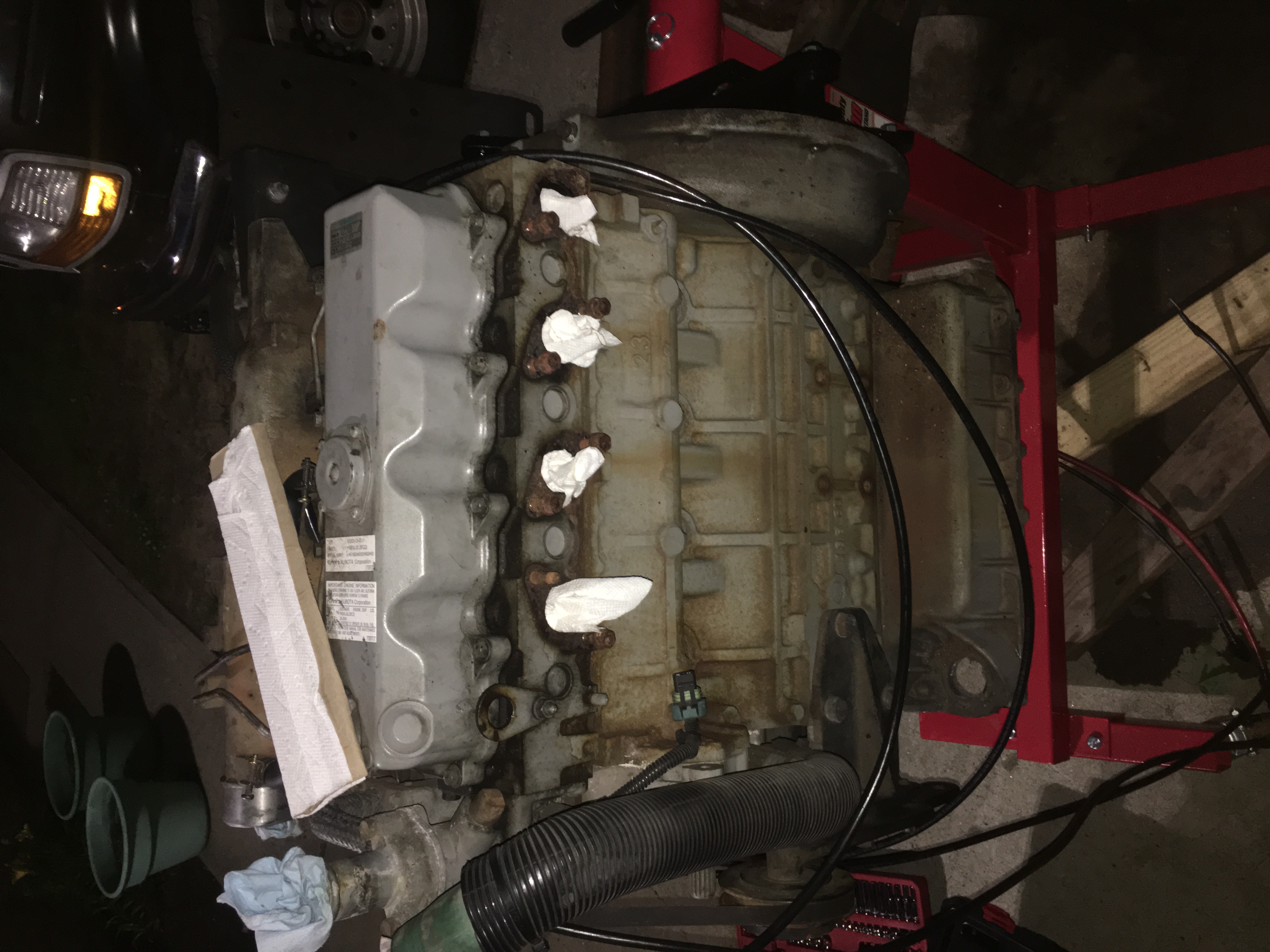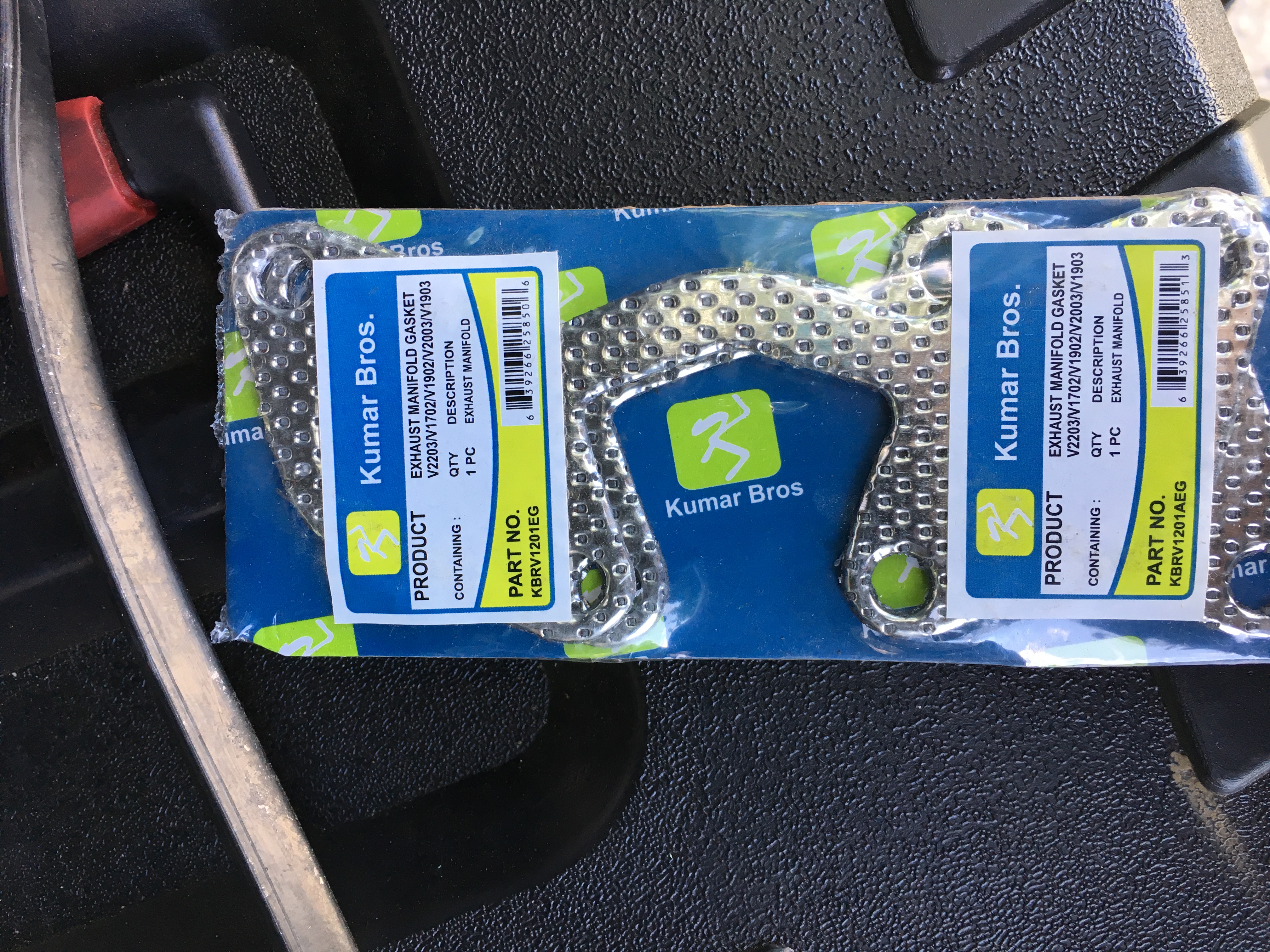 Update time: I'm finished for the semester so now I'm back to work which means more time and money to work on the Kubota. I finally got the engine on a stand (Harbor Freight special, pretty nice for the money) and started getting parts together. I picked up a few gaskets from a local company that has all sorts of parts for these engines, everything from gaskets to heads and cranks. Most gaskets are in sets, unless you go in and ask for it. If anyone needs gaskets, PM me and I'll see if I can work something out. I also got the Carrier manifold pulled off and I only broke one stud, which I'm blaming on Dan since he was telling me about IP tuning instead of letting me focus No matter, the stud backed right out with some mild persuasion with a hammer and vice grips. I also picked up a power steering pump to start working on the mounts for that and most importantly, I got a trans.