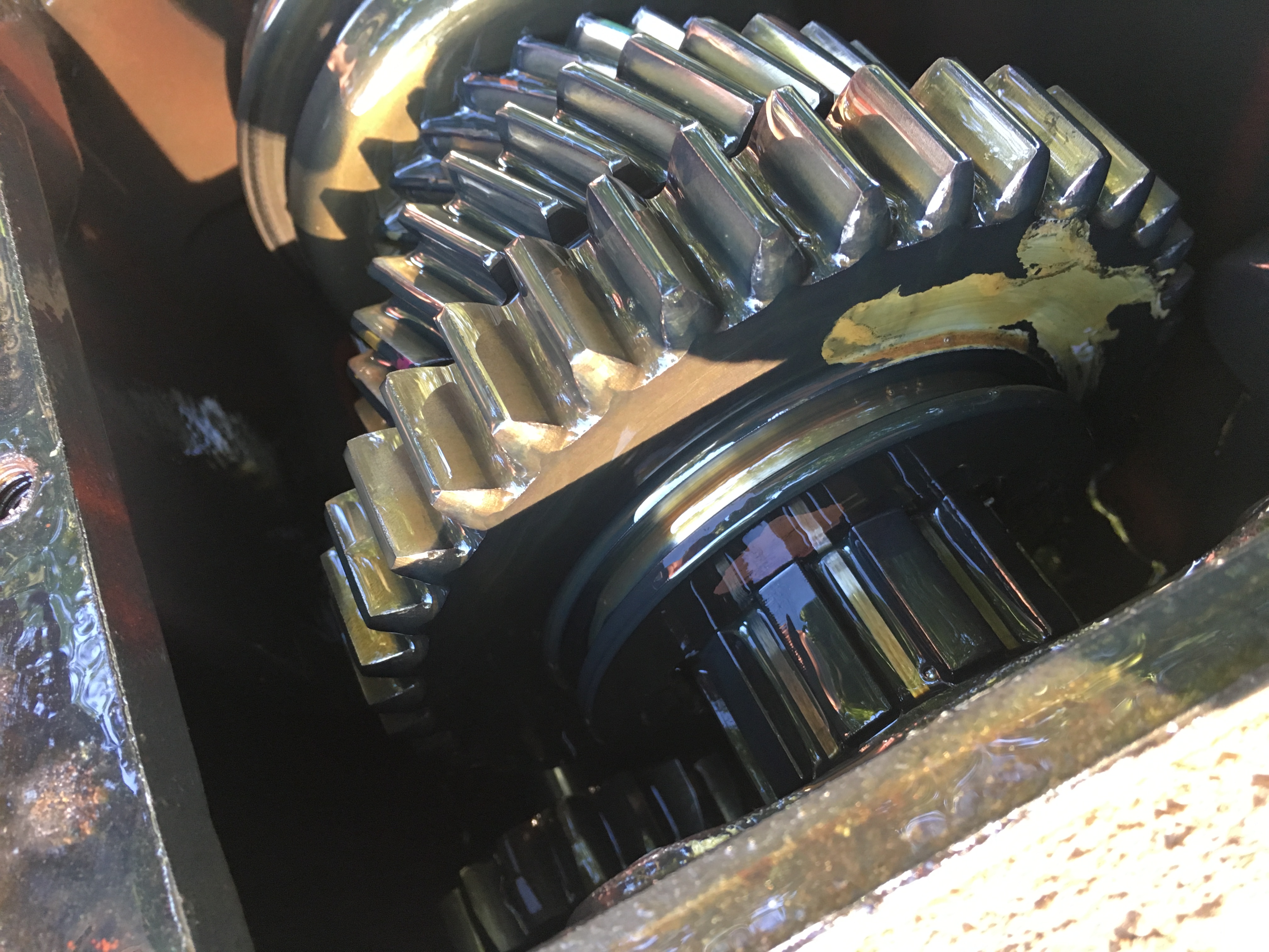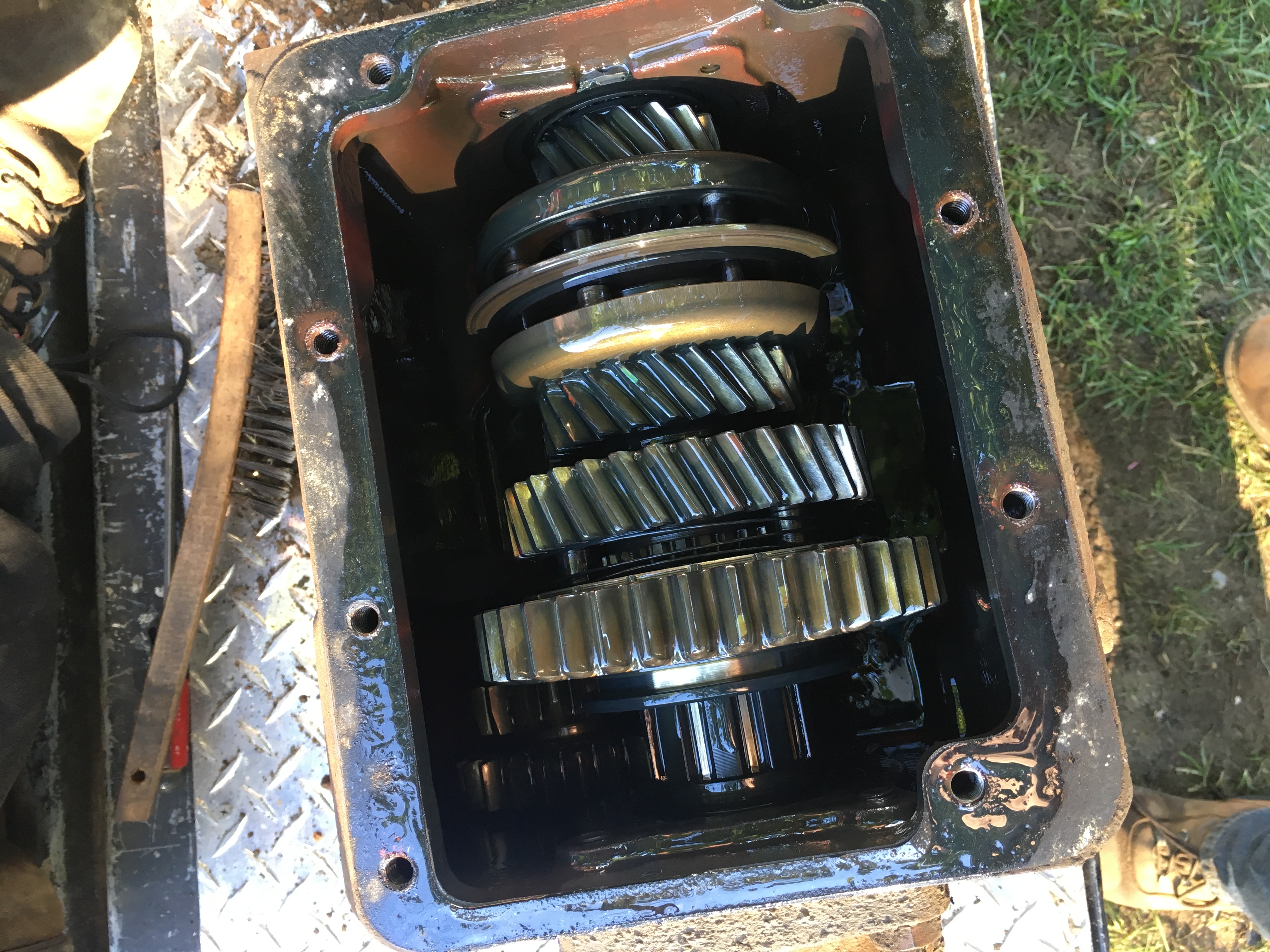 And now for the fun part. After much deliberation I decided to abandon my idea of trying to cobble together a World Class 4x4 T5 or and started looking for an AX15. And then I found an NP435 and The trans has 88,000 original miles and it's out of a 1966 Ford F250 Camper Special 2wd with a V8, that was sold from the Ford dealer that used to be about four blocks from my house. Better yet, before the owner died, it looks like he had it completely rebuilt, unless 51 year old gaskets peel off in one complete piece and don't leak, and all the gears have paint marks on them and no signs of wear and the plastic shifter forks are brand new. Yeah, score of a lifetime. Oh, and 6.68 first gear, so I can climb a tree with the Jeep. I could get an adapter to run my np231, but then I have to find another one with a 23 spline input as I would like to be able to sell me drivetrain as a complete unit. And the adapter is expensive. I'm opting to run a Early Bronco Dana 20 transfer case, which is a gear driven case that is much more compact than the np231, has a similar low range, can be twin sticked by simply adding another shifter to the case, and the adapter is much cheaper. But better still, according to my research I can cut the flange off the output housing on the 435 and cut the flange off the intermediate housing on the dana 20 and weld the intermediate housing to the 435 flange and it all bolts up, making it infinitely cheaper and I can then clock the case to make it sit higher in the Jeep, if so desired. And as for overdrive: Ranger Torque Splitter. Hence, why I'm trying to save all my pennies. The perk of the splitter is that I can engage OD in every gear, my OD 4th gear will be .73, which is higher than the AX15 and infinitely higher than my AX5's .85 OD gear (yeah, borderline useless), and it's only 7 inches long, making the whole combination about the size of a AX15 np231 with a super short shaft, possibly even shorter. And infinitely stronger, as the AX15 is good to about 300ft lbs, which is a little close for my comfort. I'm also using a CJ bell housing to bolt the np435 right to the flywheel housing, and making an adapter to retain my 2.5 flywheel, as the 4.0 and 2.5 flywheels are almost the same size and the pilot bushing is pressed into the flywheel instead of the crank, meaning one less piece for me to have to machine. The bell housing doesn't have a CPS hole cut in it, so instead of trying to machine that and make up the difference between the two flywheels so the sensor can read, I'm going to rig something up the the crank pulley like how the Ranger and S10 guys do it to make my tach work.