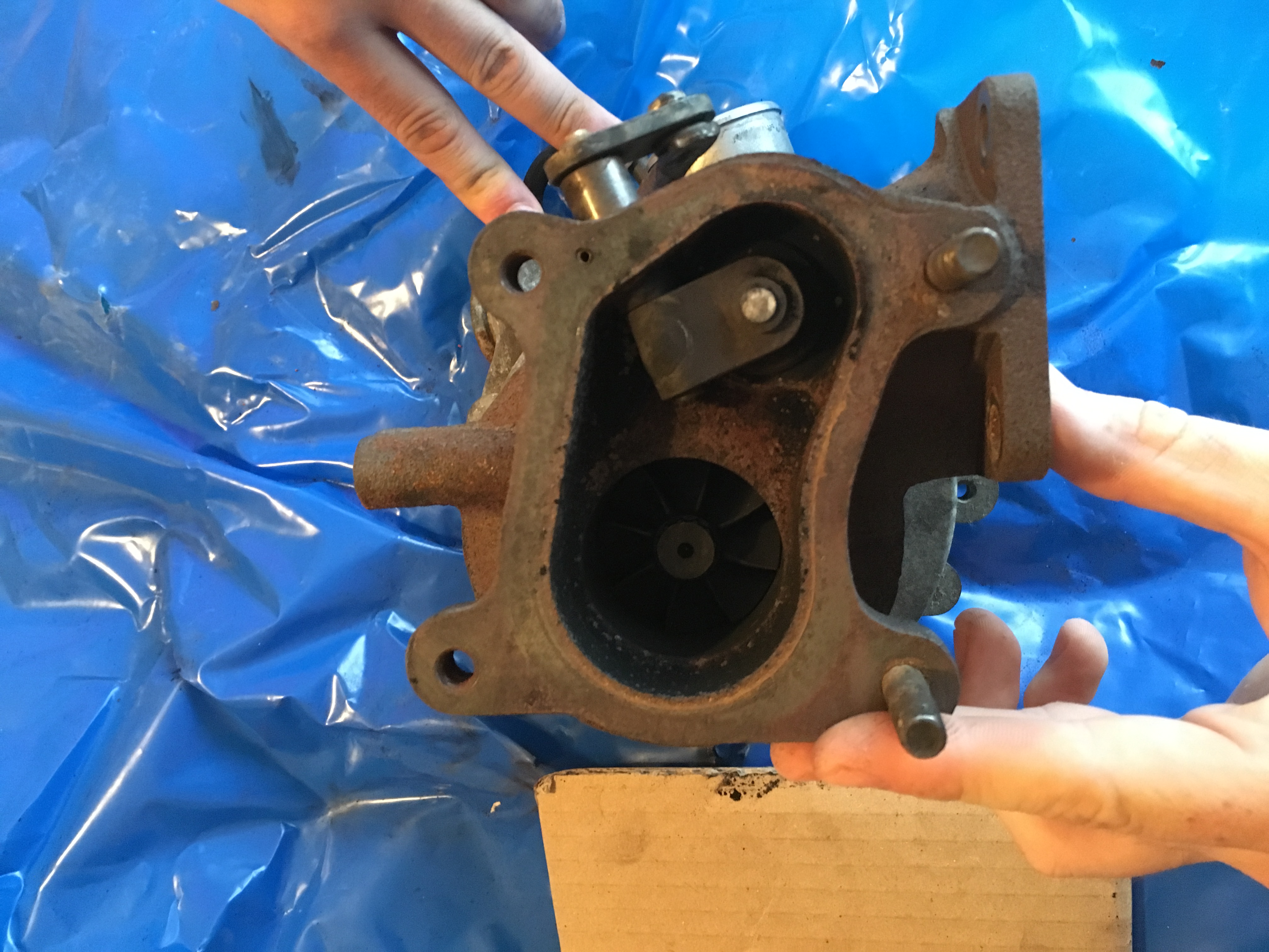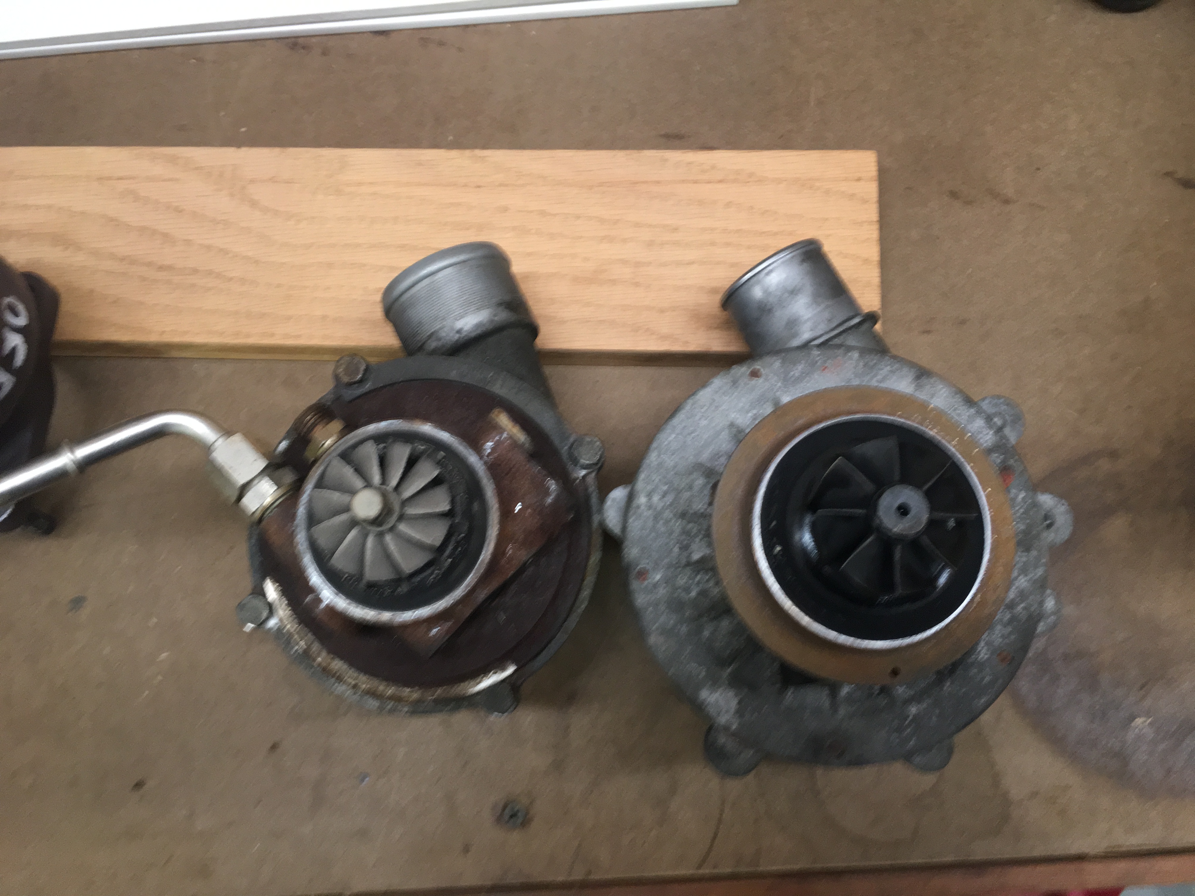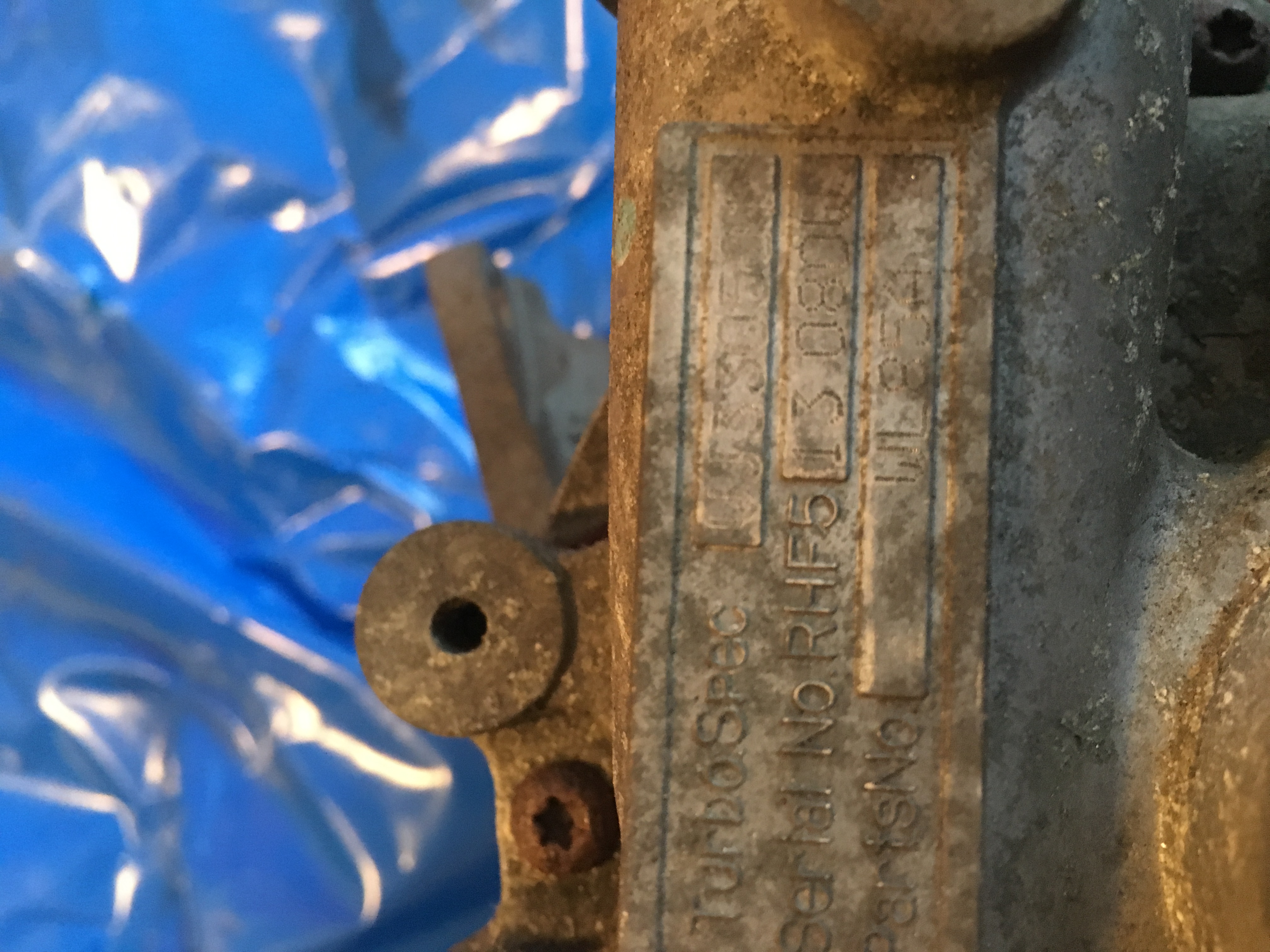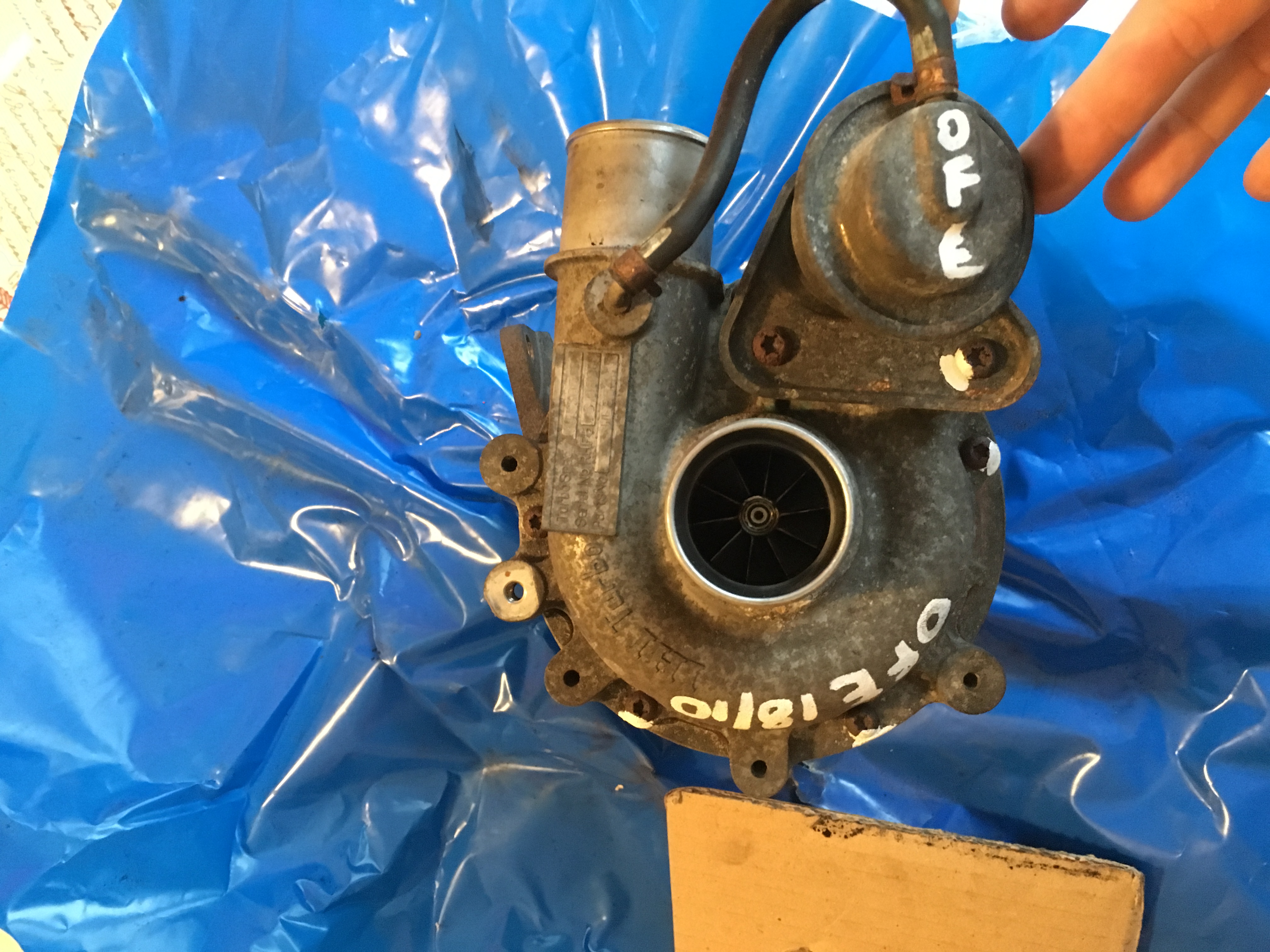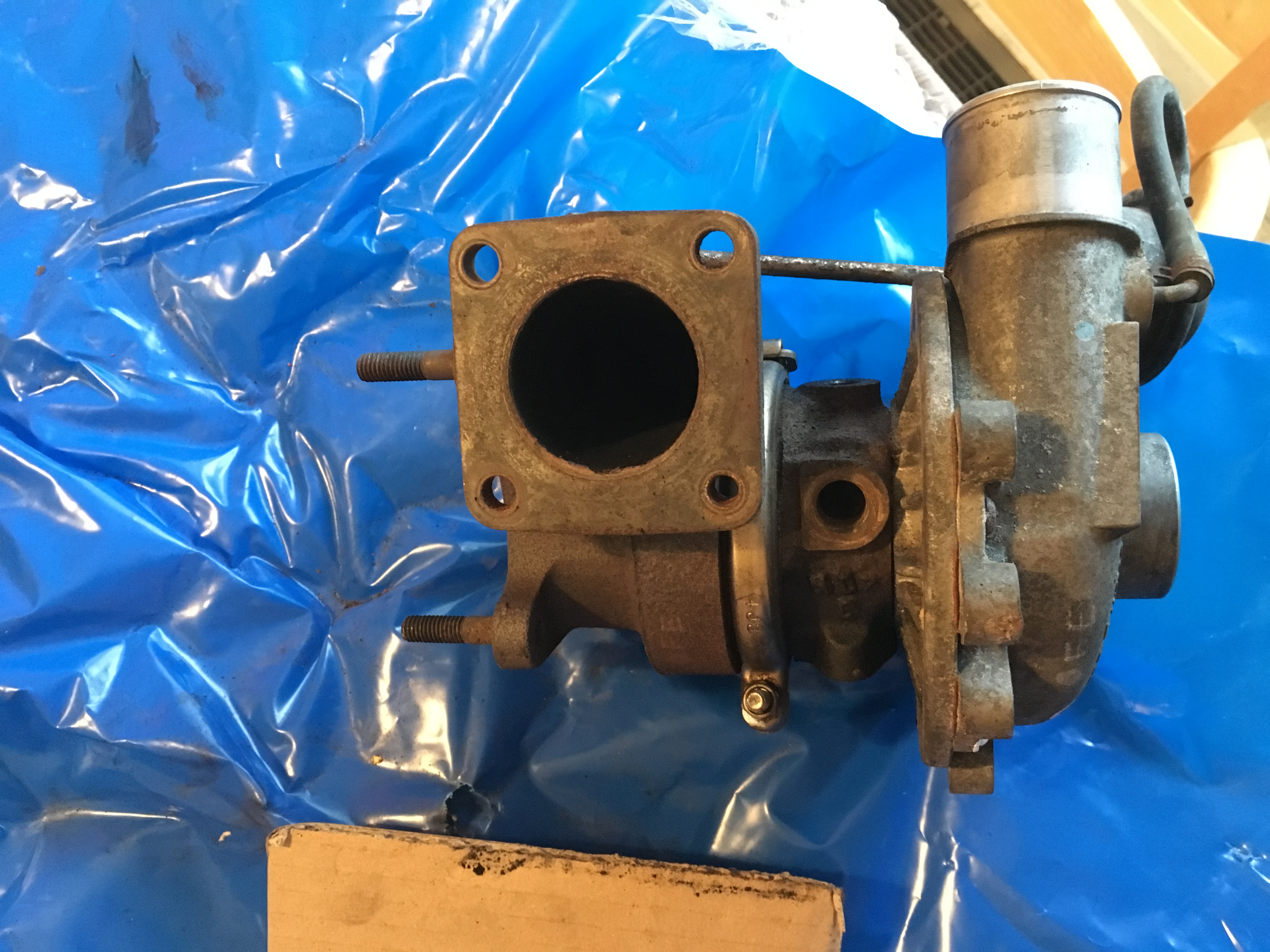 And I picked up a new turbo, had it shipped from across the pond. It's an IHI RHF5 VJ33 off a 2.5 Ford Ranger. Seems to be in pretty good shape, and it was cheaper than a new eBay China clone, so I can't complain. Only problem is I can't get the bolts out of the compressor housing, gotta love Torx bits. I took a couple pictures comparing the VJ33 to the K03 and they're close in size on the hot side, the VJ33 looks to be maybe a tiny bit bigger, and the exhaust housing looks like it would flow a lot more than the K03 housing. If anyone is looking for a K03 to use as a parts turbo or a mockup, I'll be selling mine. I also have a downpipe flange to go with it. I also have it sitting on a 2403 turbo manifold and the pattern is close, but not the same. If anyone has a side exit manifold, I'm looking to trade mine for it as the turbo is set up perfect for a side exit manifold.