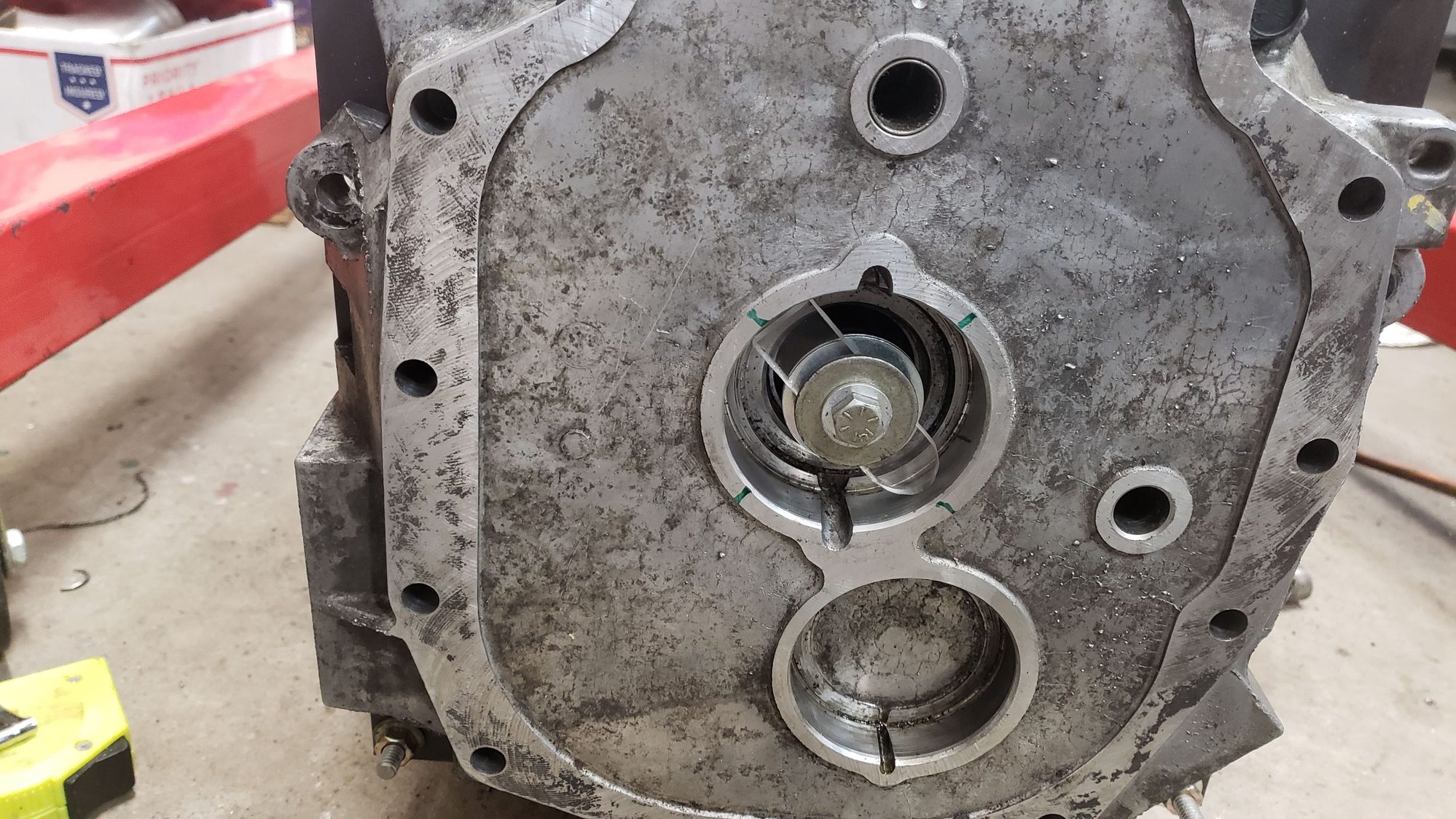 For the pilot bearing, I had the machine shop cut the center bore to a usable size- in this case 1.375. Then I used a drill bushing to bring that down to 1", and installed an oilite bushing. There are a lot of different ways this could be done. I went with the drill bushing because they're cheap and precise, and I could use it to space the pilot bearing however I want. I don't really care for the roller type bearings that ride directly on the shaft- seen those fail too many times and take out the shaft. Plus I think a bushing will be more tolerant of misalignment... which is good since I'm cobbling together an engine and transmission that were never meant to join.
