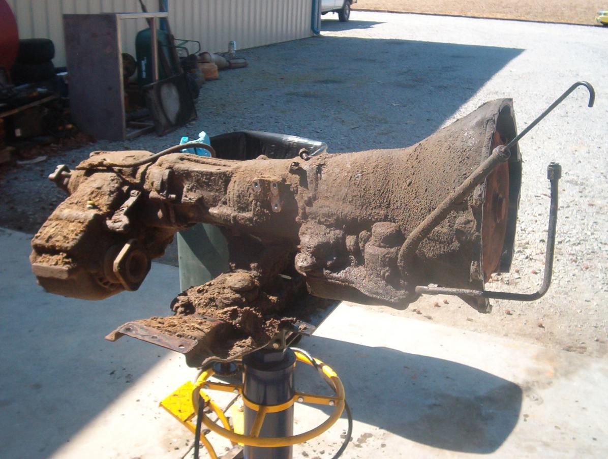 Heres the tranny its an A518 overdrive. I have a rebuild kit, converter, shift kit, and an HE341 turbo (off of an 03 dodge) on the way from Diesel Nut Motorsports (great guys to deal with) I hope that stuff will be here this week!!! Then I will let you guys in on the teardown and rebuild!! The truck in the pics is the doner truck for the trans and the intercooler. I have got the engine cleaned up since the pics and I now have a low mount turbo manifold! I CANT WAIT TO GET IT IN THE TRUCK!!!