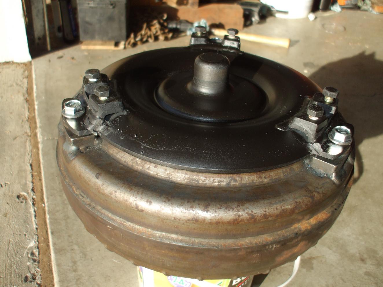 Thanks for the words of encouragement! John, the benz t-conv is 1/4 thick, plus tough (had to use a carbide bit to turn on the lathe!!) I welded a bead up on the inside to turn out a pilot for the GM snout. I have the 12in t-conv with the large snout, bigger than the benz snout, so building up with weld and turning down was the only option. The second pic shows the weld. Thanks Cheeper, I got 410s