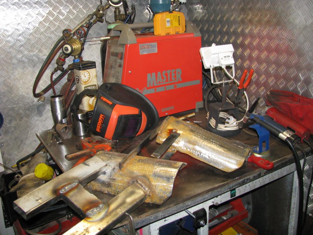 made some brackets to allow fitting off road tyres to my welding trolley,im building a car port outback,so i can work through the winter on this truck.