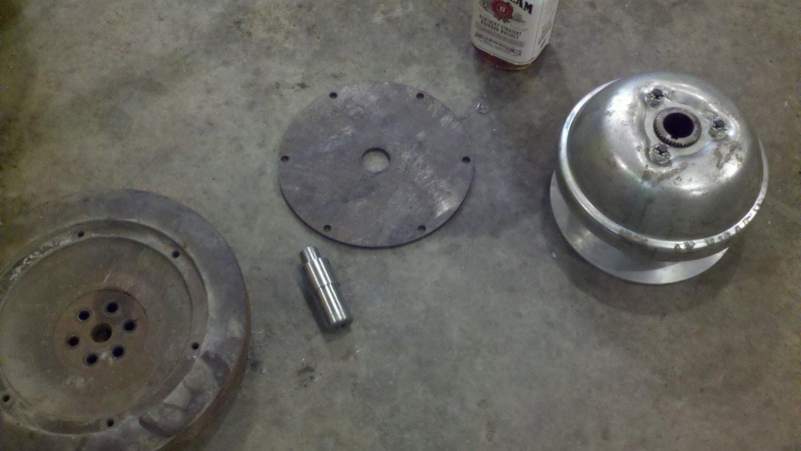 Tight fit, i will have to widen the frame some. i had to fab a flywheel plate and clutch shaft. my old clutch compared to my new comet 1190. clutch installed on flywheel