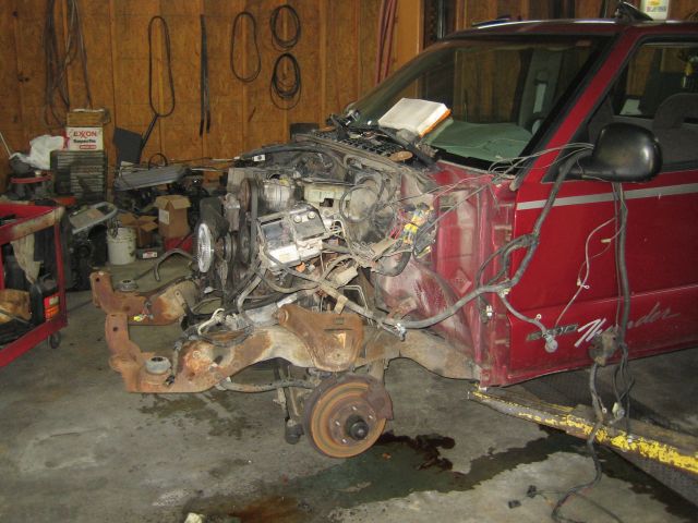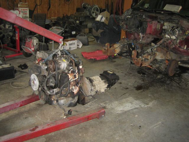 So I've read, I've studied, I've pondered, and have now begun. I found a 1996 Chevy S-10, 4 cyl, 5 speed, regular cab, 2wd, short bed, with the motor down. Perfect!! Towed it home and got started today. Though it was a little extra work I pulled the complete front clip, figure it will make fabricating the accessory brackets easier. It did make getting the engine and trans out a bit easier too. I'm going back with a Kubota V2203 engine. This engine is not turbo charged but it will be. It's about 50 H.P. the way it is and I'm hoping for 70 H.P. after the turbo. Obviously it will not be a power house but that's not my goal, I want MPG. The little truck has a 3.73 gear that should put it right in the little engines power band of about 2400 RPM at 75-78 MPH. Anyway the next thing is creating the plate to adapt the trans to the engine, going to take Jake's advice and use 1/4 plate steel. Stay tuned for updates I'll let y'all know how it goes.
