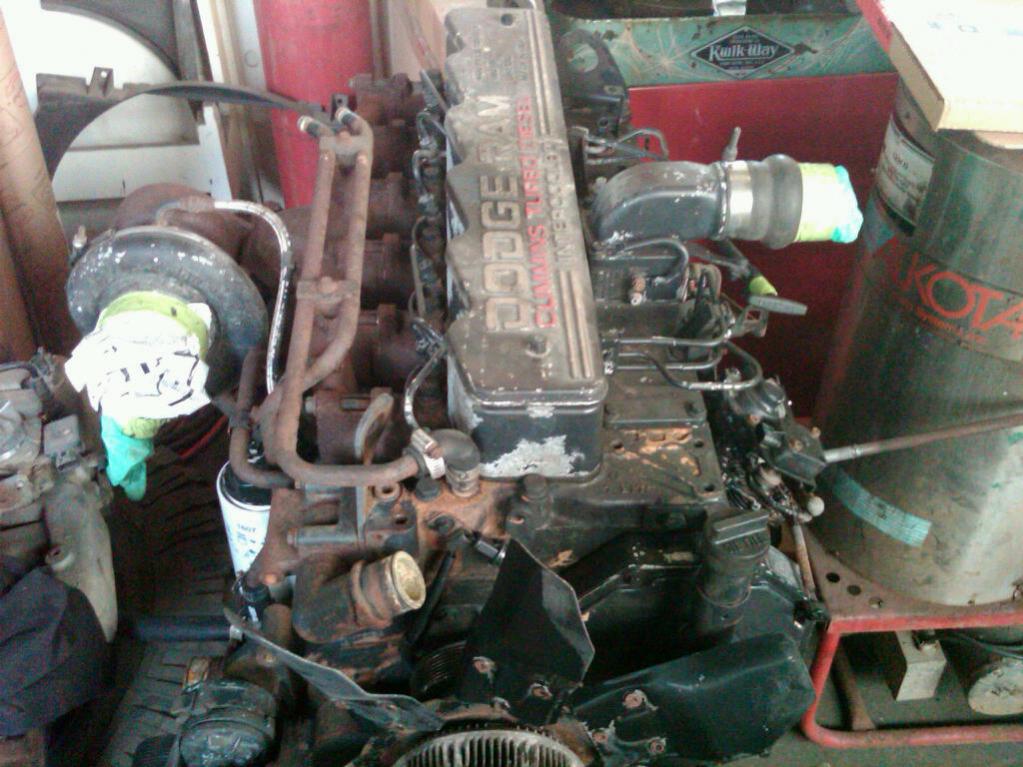 Here are some pics of the truck and the motor I want to use. I traded an audi a4 that I paid 800 bucks for, for the truck. It was pretty much a basket case. I also bought a 1500 parts truck for 300 bucks. I swapped the bed, doors, and entire interior including the wiring harness so I could have power windows. The truck ran great until the 6.5l had a 6.5l moment. Anyway I figured it would be a great time to dive into an overwhelmingly large project that I have no time or money for and got the cummins. So its going slow but I am still determined to get it done.