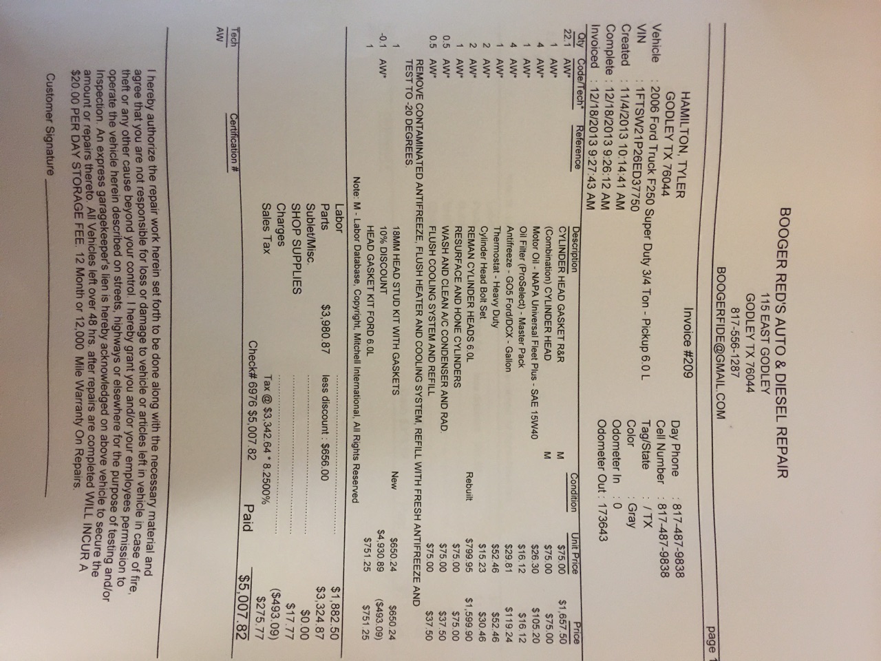 One thing when they did the head gaskets is that, did they put arp head bolts? To me it doesn't look to be the case since the charge isn't in the $400 dollar range. But it's noticible if arps are used by looking just under the valve cover, if you see a big bolt head, it's stock, if you see a stud with a 12 point nut, that's the arp. So if it's stock, it's not to late, some guys can throw in arps in without re doing a head job. But one problem, it's to pull the bolts off on the passenger side at the rear. Guys either pull the cab off or pull the whole heater/ a/c core out (the big black box on the passenger side that is attach to the fire wall) this is a pain in the *** process but do able. I truly recommended it especially if your running a tuner.