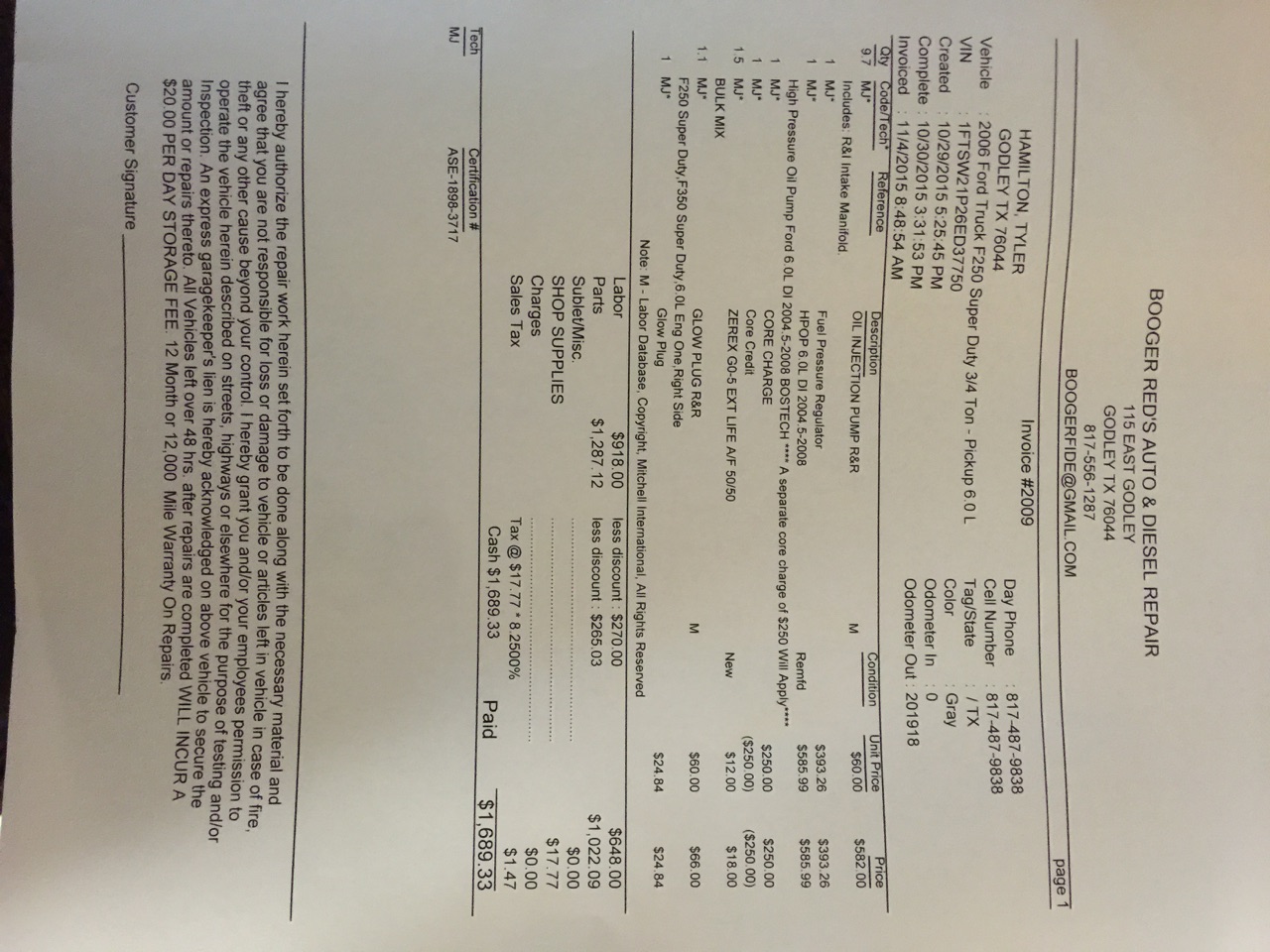 Another thing is to bad, but not to serious, that there is nothing on replacing the oring on high pressure oil rail (Hpor) and the stand up pipes and dummy plug. This can prevent high pressure oil system (hops) leaks. Guys do this at the same time as head gaskets. But not to costly to do. The concern I say this now, is cause of the milage on the truck.