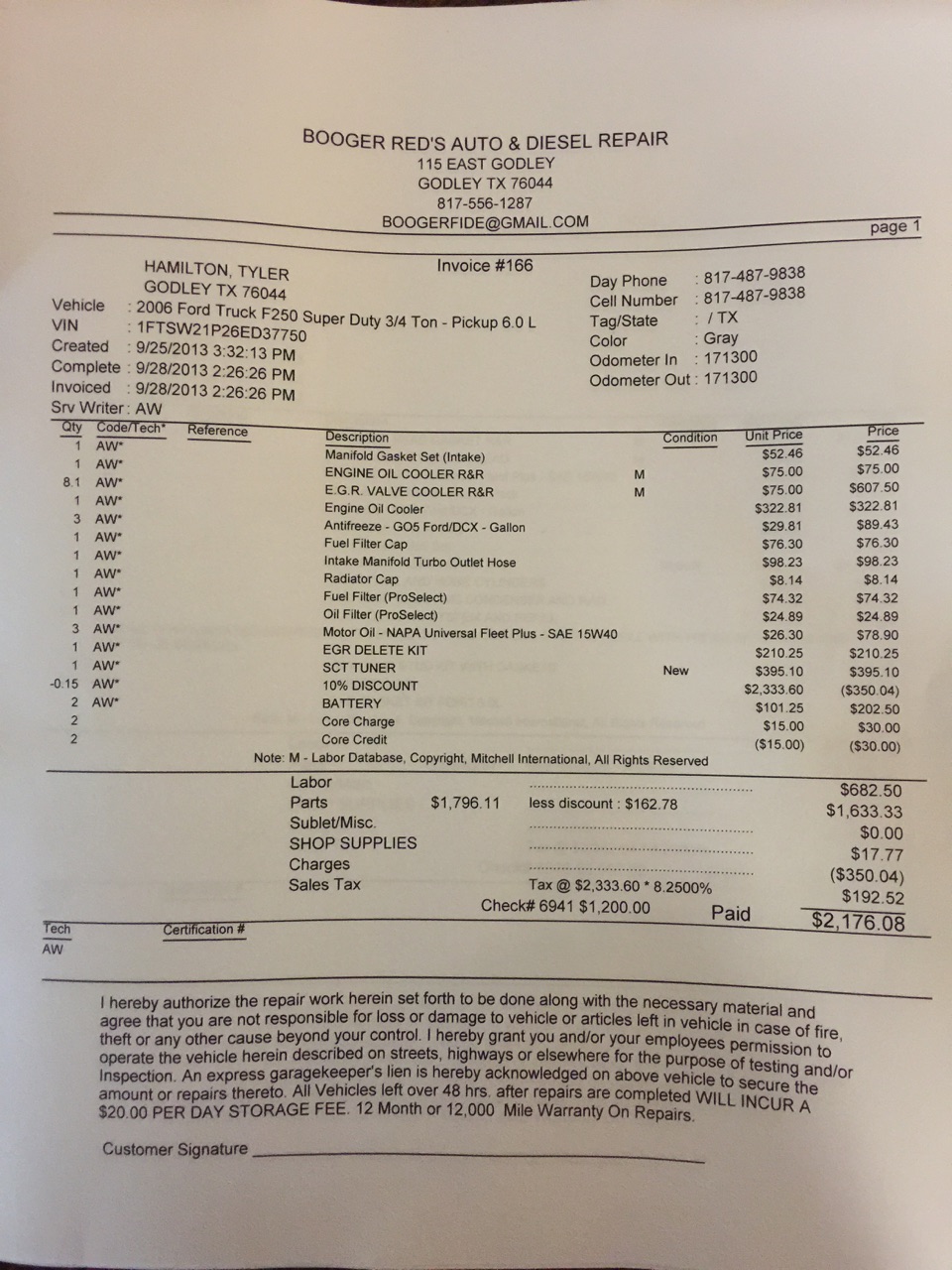 Nice that the IPr and hpop are new too. EGR delete, AWESOME, good riddance, if it's stock cooler. Oil cooler done, very good.
