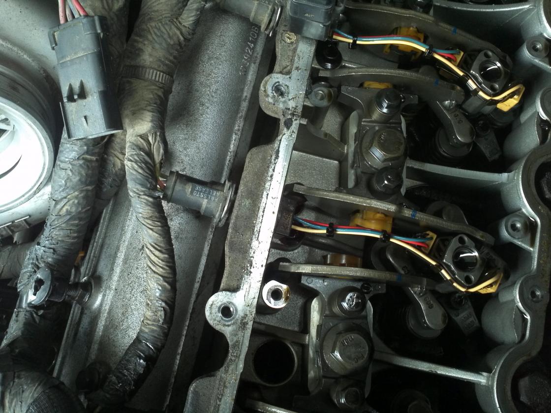 i am trying to blow these pics up so you can see them better , as Bob said they are on the spreader bar heads not the rocker arms , its the piece that pushes down on the actual valve spring what my head guy calls the dog bone piece , if its not normal what in the heck would of caused it ?