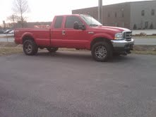 the truck is a 2002 f350 xlt ext. cab 8 ft bed srw that is fire engine red with grey interior and 171k miles. The truck has a k&n intake with the new battery box, a 4 inch turbo back exhaust to a 5 to 8inch miter cut chrome stack, has a set of train horns, 20% tint all the way around, i had it custom tuned by eric at innovative diesel and also has a dfuser map sensor boost fooler thing. Has a little bit of rust starting on the rear fender wells. has a sewt of 18 by 9 EAGLE ALLOY RIMS wrapped in 33x13.50 all terrains that have only 2500 miles on them. the truck runs as good as it looks