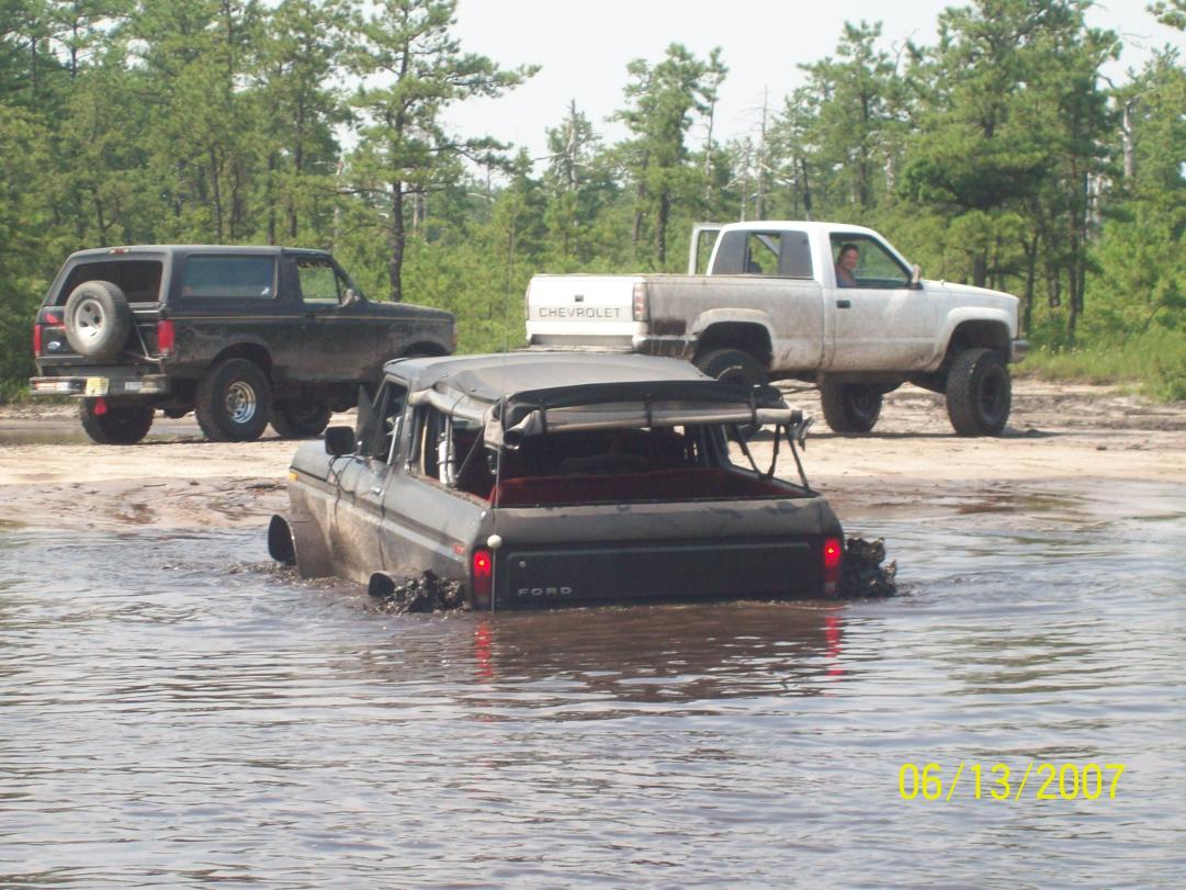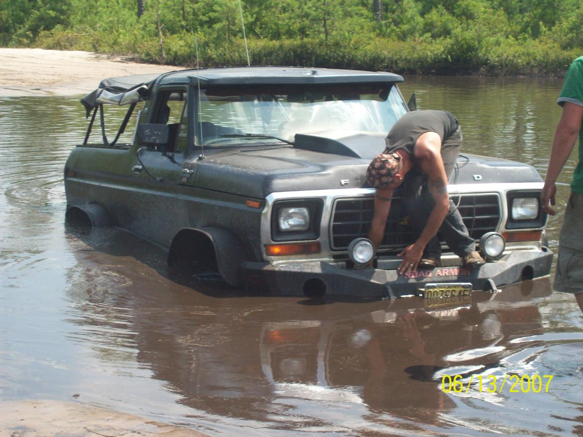 Don't have pics, but in my diesel 3 times (hey, it's 2wd) once turning around and the front tires sank through the shoulder (I beams were touching the ground), once in my backyard when I hit a muskrat den and put my truck in the lake (yes it is open season on them bastards year round now), and once at the scrap yard when my front tires sank in the damn sand.