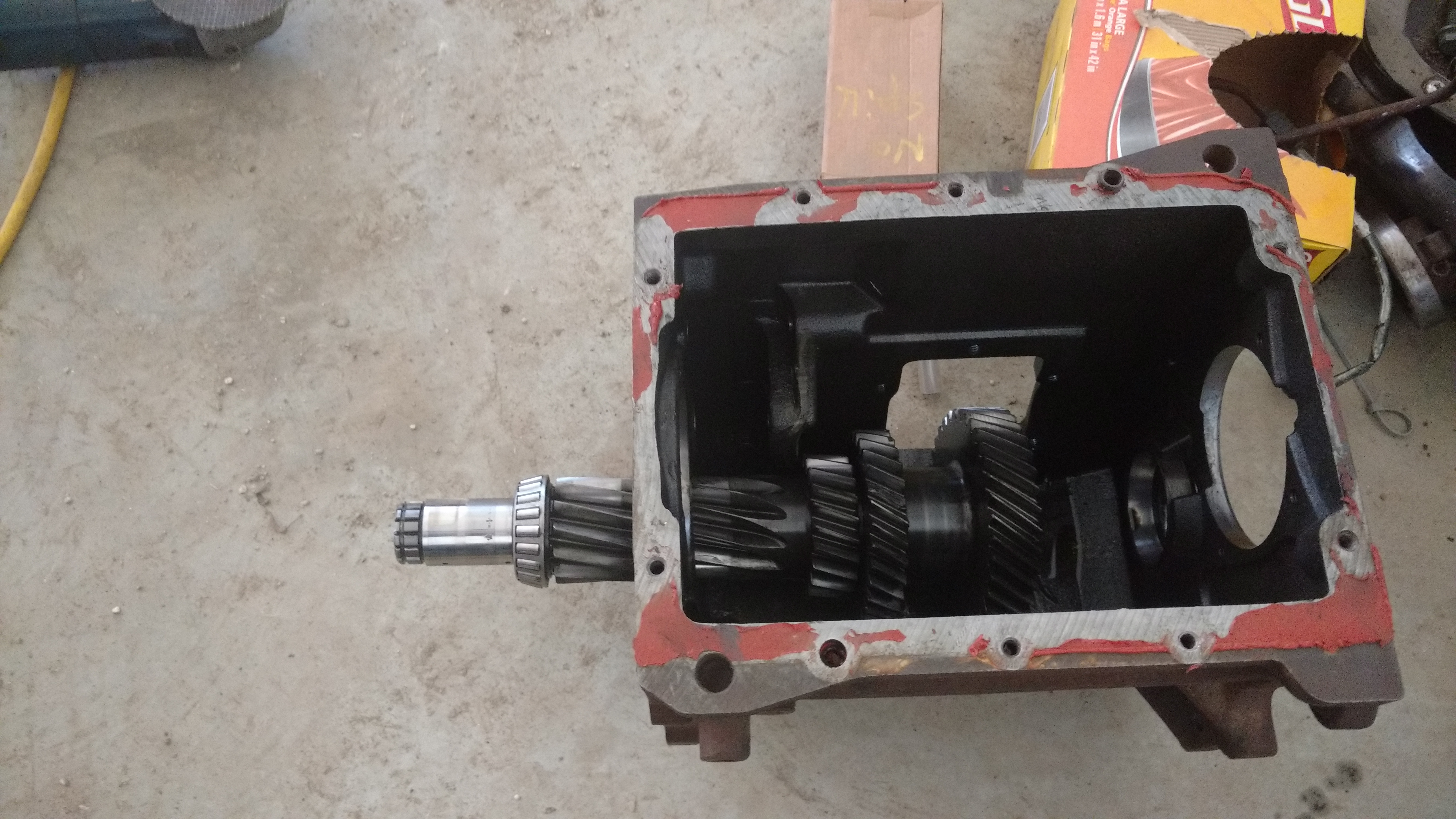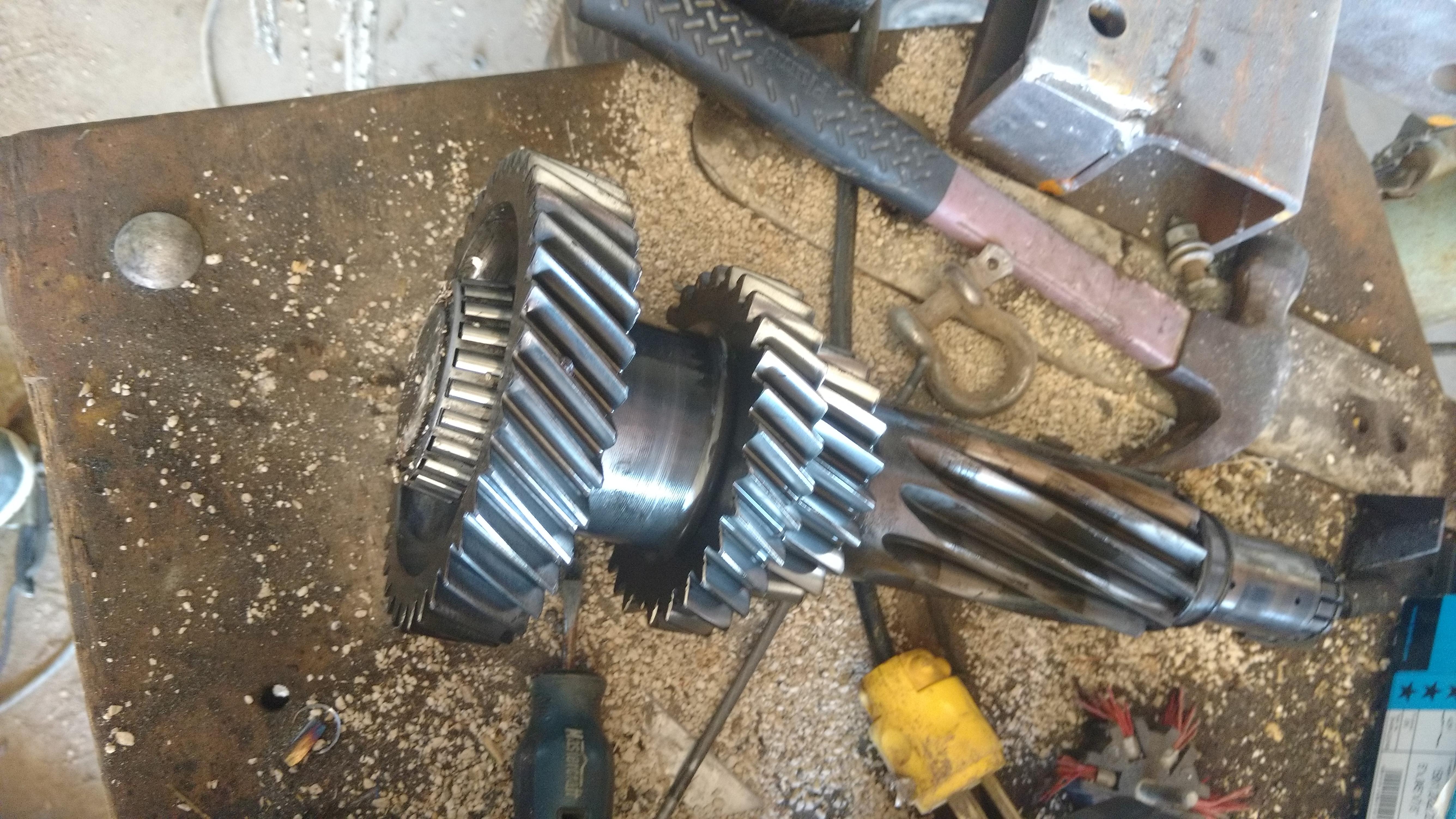 The nv4500 after cleaning and the truck i pulled it from . 5th gear had a tooth missing so i decided to replace that and send it . But when i was tightening on a new gear i actually broke a tooth off of third gear on the countershaft. Whoops Picked up a fresh countershaft and a full rebuild kit for the transmission . Lesson learned i guess . Also bought a LuK 13 inch ceramettalic clutch kit to pair with the fresh trans . Its no south bend but hopefully it will do what I need . Also a little before and after of cleaning the motor